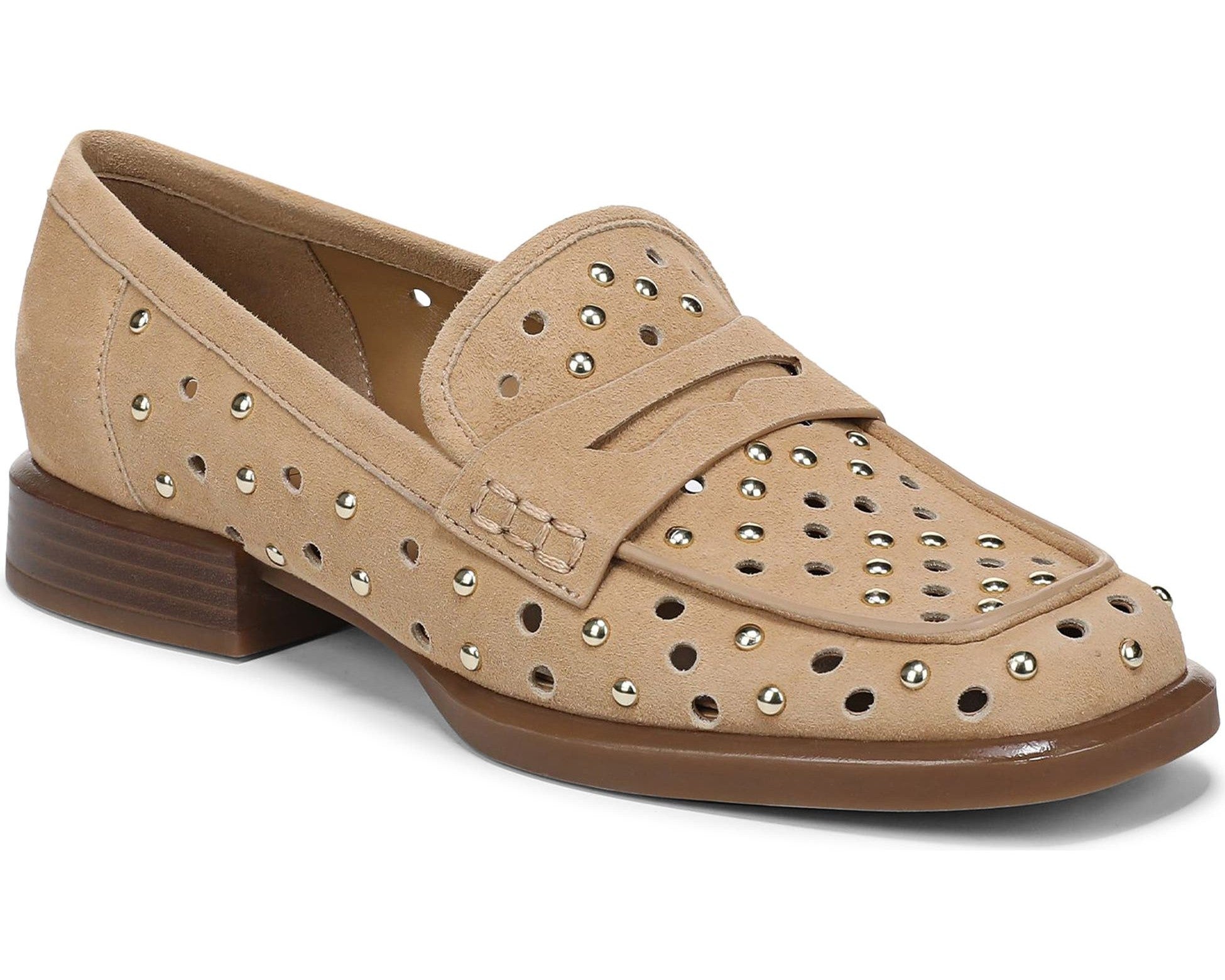 The Naturalizer 27 EDIT Haven Perf Loafers combine timeless sophistication with contemporary detailing for a chic, breathable update to the classic loafer silhouette. Crafted from premium leather or suede, these loafers feature all‑over perforations, polished dome studs, and a subtle penny strap accent. Their modern low block heel and rounded square toe create a balanced, tailored profile suitable for professional and casual wear alike. With soft linings, extra flexibility, and built‑in cushioning for heel‑to‑toe comfort, they embody Naturalizer’s signature blend of style and function.