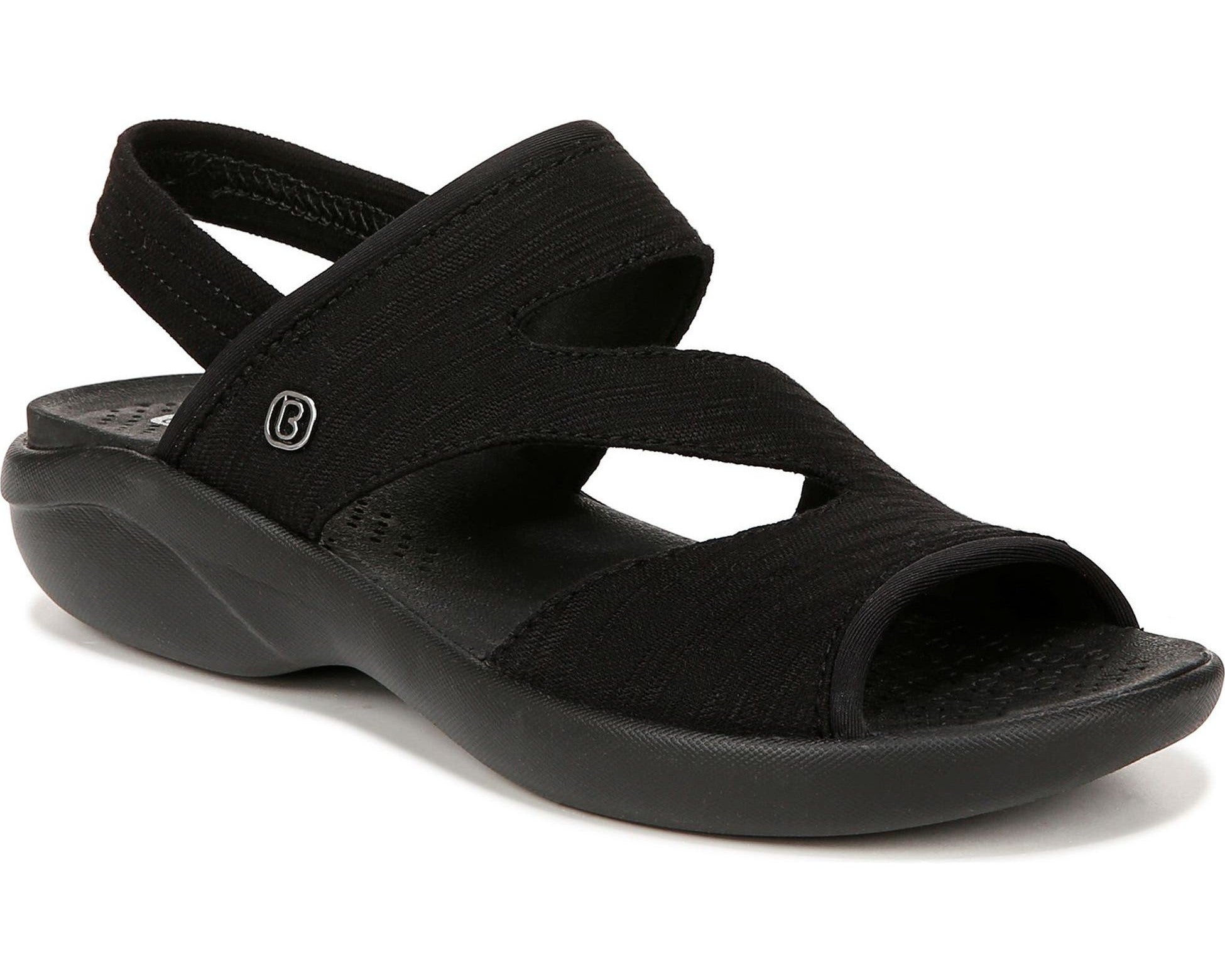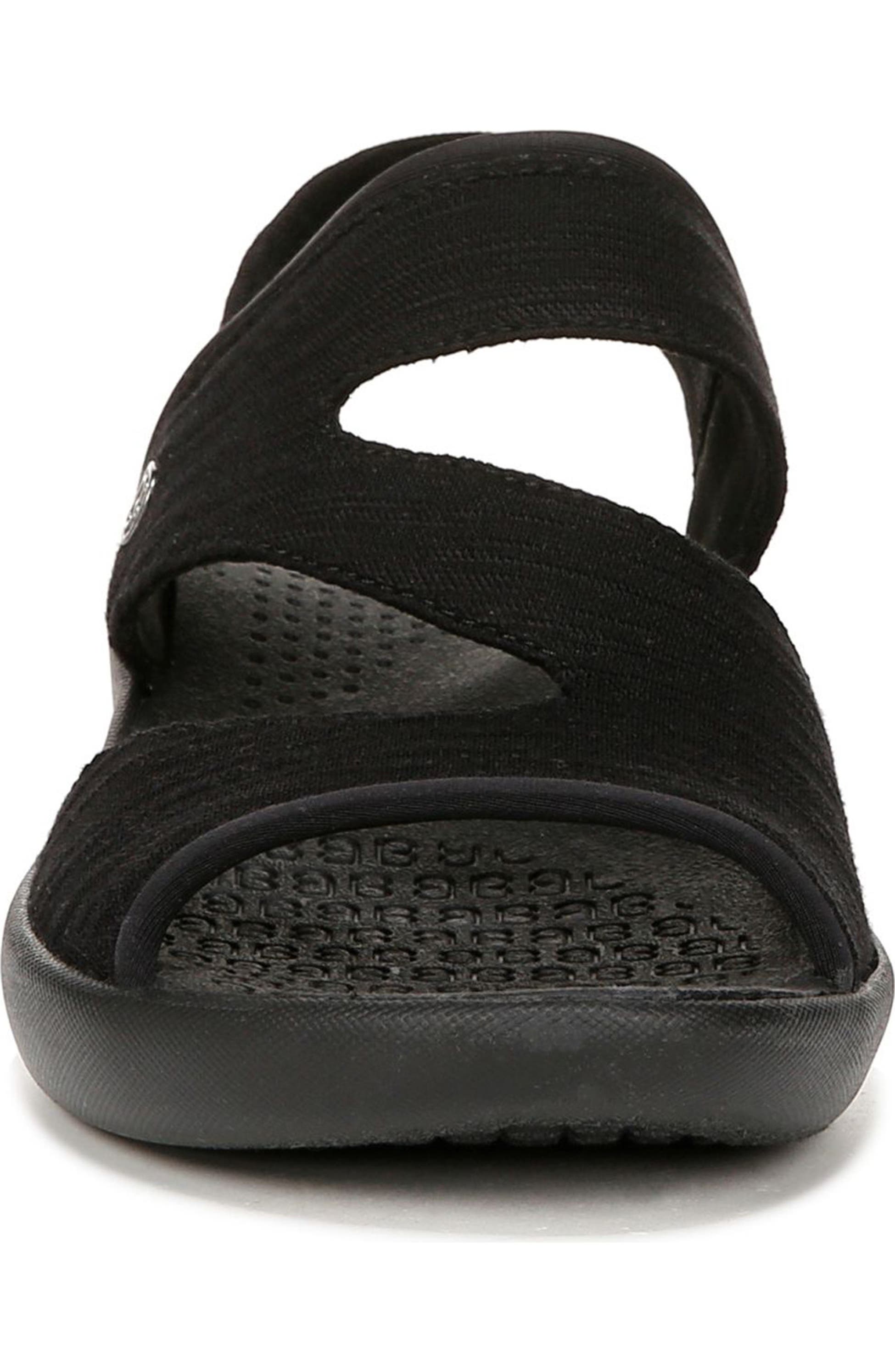 Sling it on! Asymmetrical straps add a playful twist to these comfy, slingback sandals for women with an easy slip on fit. Stretch fabric upper with partially recycled linings and open toe. Slip-on fit.