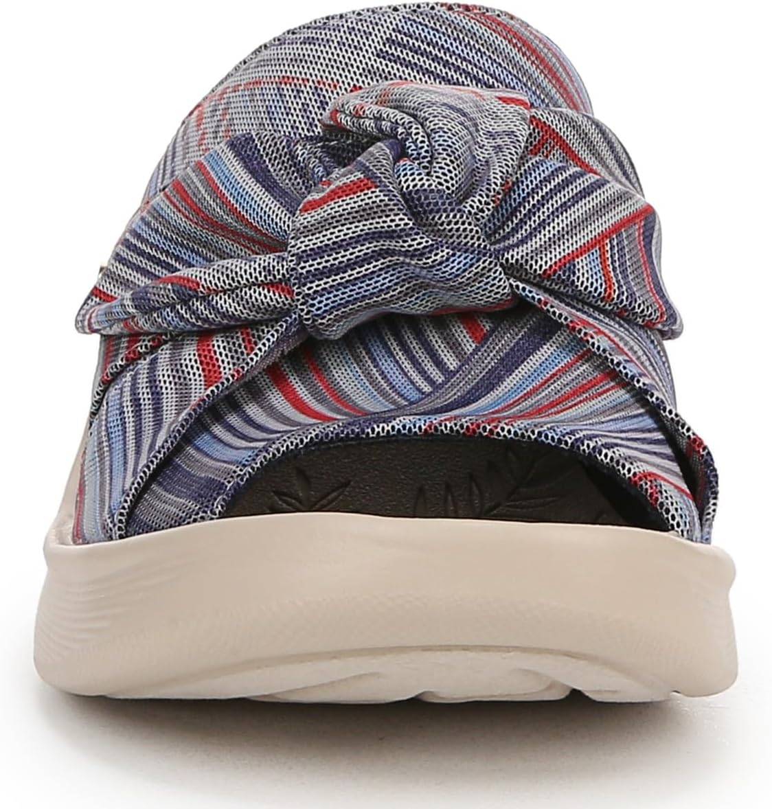 Put on a constant smile with every slip into these incredibly comfortable slide sandals. Bzees shoes are designed for ultimate comfort and ease, every Bzees shoe features cloud-like cushioning, making Bzees shoes ideal for dynamic lifestyles. They feature a stretch fabric upper in a casual style with an open toe and a charming knotted bow detail. Enjoy the easy slip-on fit.