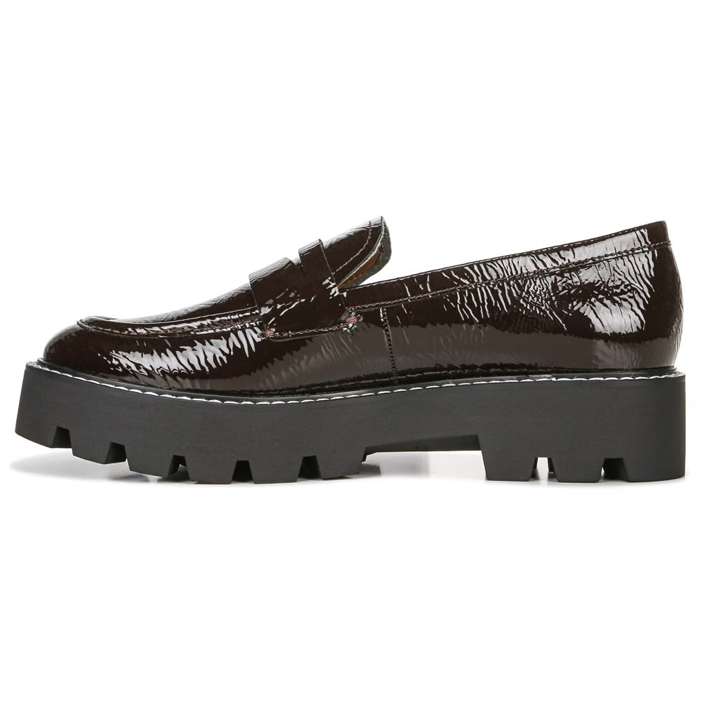 A sport-chic women's loafer with a substantial chunky lug sole and an amazingly comfortable feel. Crinkle patent upper, fabric, or faux leather upper partially made from recycled materials. Eco-conscious linings with soft + sustainable comfort. Extra cushioning with a cupped footbed and flexible fit for all-day wear. Slip-on fit for easy on/off. Round toe. Penny keeper strap. 1.57 inch platform heel with lug sole can be dressed up or down for any occassion.