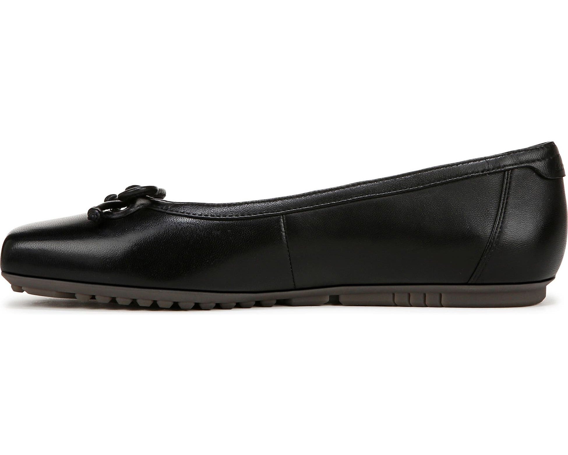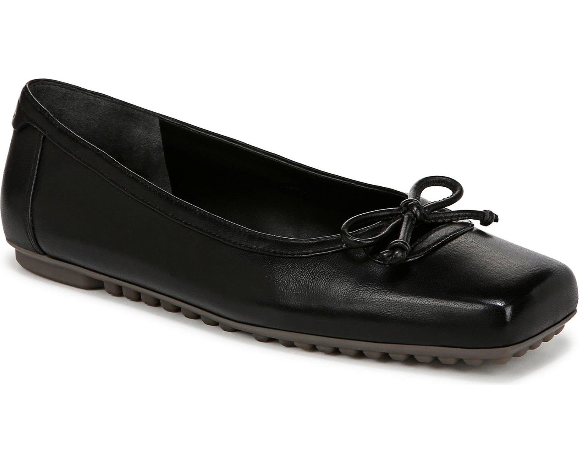 This ballet skimmer features an artful cutout and fabulous finishes for just the right amount of attitude. Leather, faux leather, or fabric upper. Cutout and bow detailing. Slip on fit for easy on/off. Square toe. 0.25 inch heel.