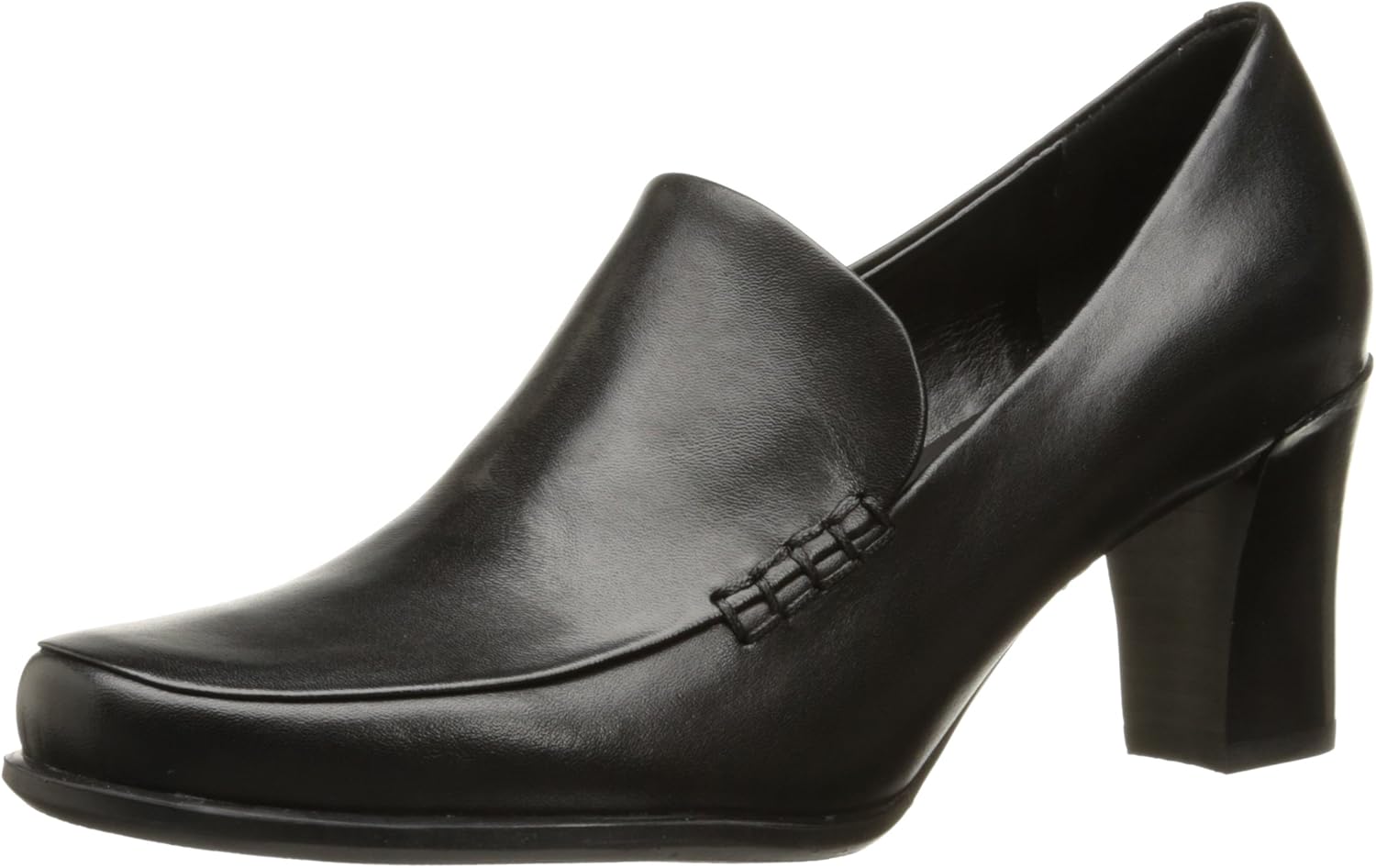 Designed to be a versatile addition to any woman's wardrobe, this timeless block heel pump, inspired by the classic loafer, exudes a consistently polished look.