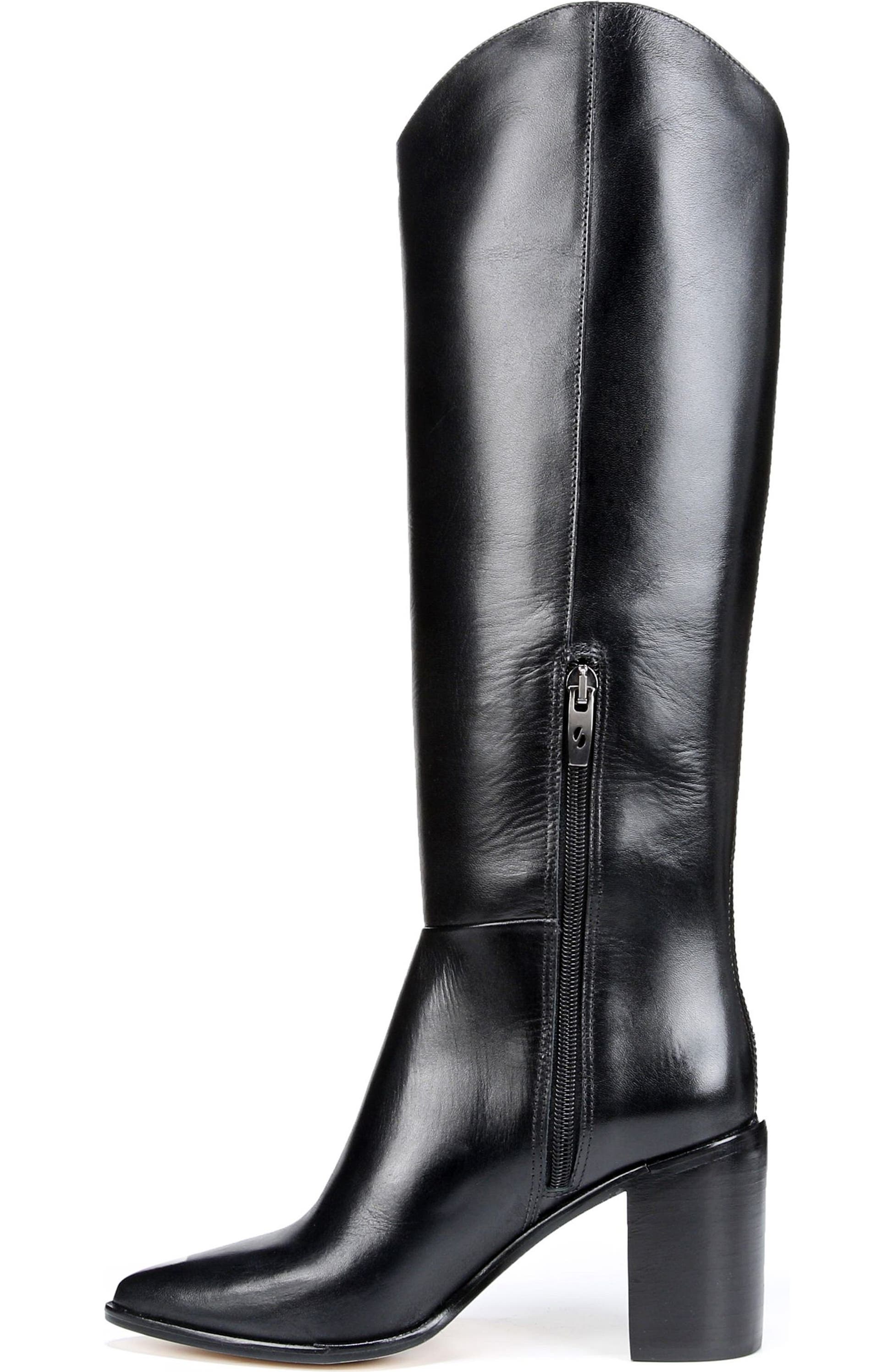 Dressed to thrill. Stunning knee-high boots for women with high heels, luxurious materials, and Western-inspired styling. Leather, suede, or metallic leather upper. Partially recycled linings with soft + eco-conscious comfort. Side zip for easy on/off. Pointed toe. 13.98 inch shaft height, 7.20 inch circumference. Note: Measurements based on size 6 boot. For each half size up from a 6, shaft height increases by . 12 inch, circumference by . 20 inch. 3.3 inch block heel.