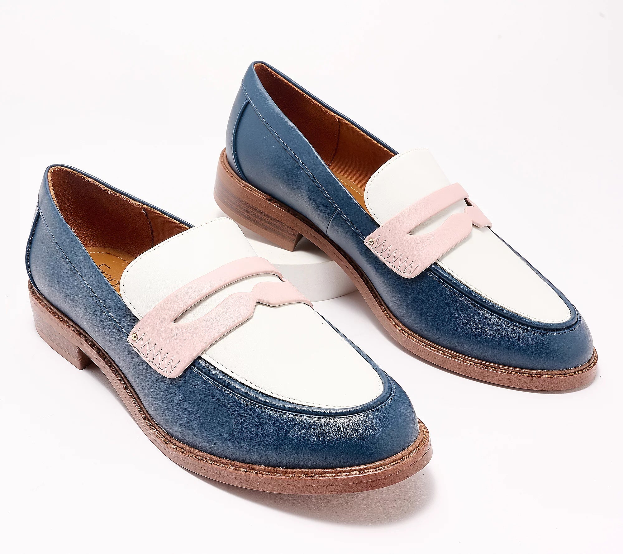The Franco Sarto Chrissy penny loafers offer timeless sophistication with a modern twist. Featuring a classic penny keeper detail, these versatile loafers are crafted in trendy denim for a fashionable look. With a comfortable 1" heel and durable synthetic sole, these loafers are perfect for everyday wear.