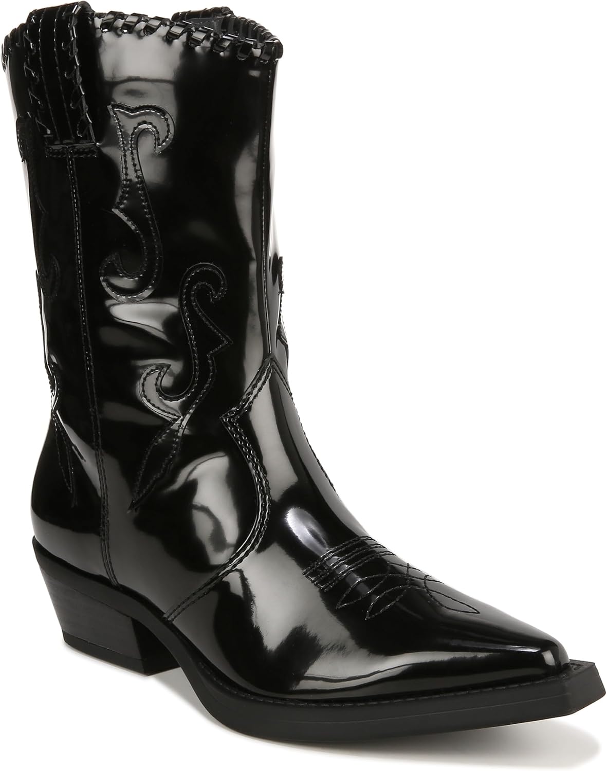 Blending Western charm with modern style, the Franco Sarto Women’s Lance Mid-Calf Boot showcases a sleek, pointed-toe silhouette crafted in rich leather with eco-conscious linings for a soft, sustainable feel. Designed for effortless wear, this boot includes a side-zip closure and sits on a comfortable 1.6-inch block heel that delivers subtle lift perfect for daily wear. The mid-calf shaft measures approximately 7 inches high and wraps around at about 11.2 inches (Size 6)—offering both structure and wearability. With its Western-inspired stitching and thoughtful craftsmanship, the Lance boot elevates casual and dressier looks alike.