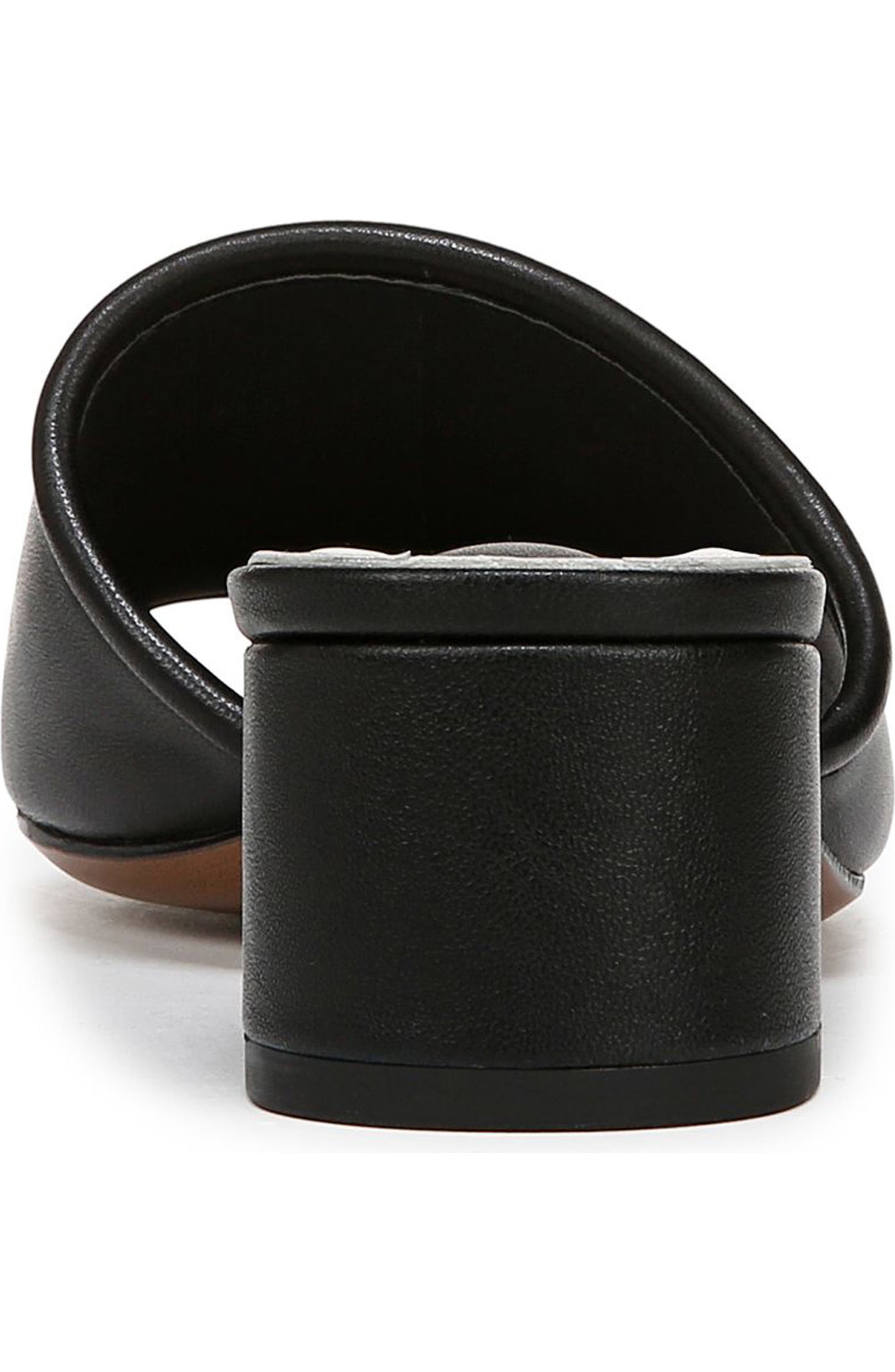 Elevate your style with these sleek mules, featuring a stunning artistic metal ornament that adds a touch of sophistication to any outfit.