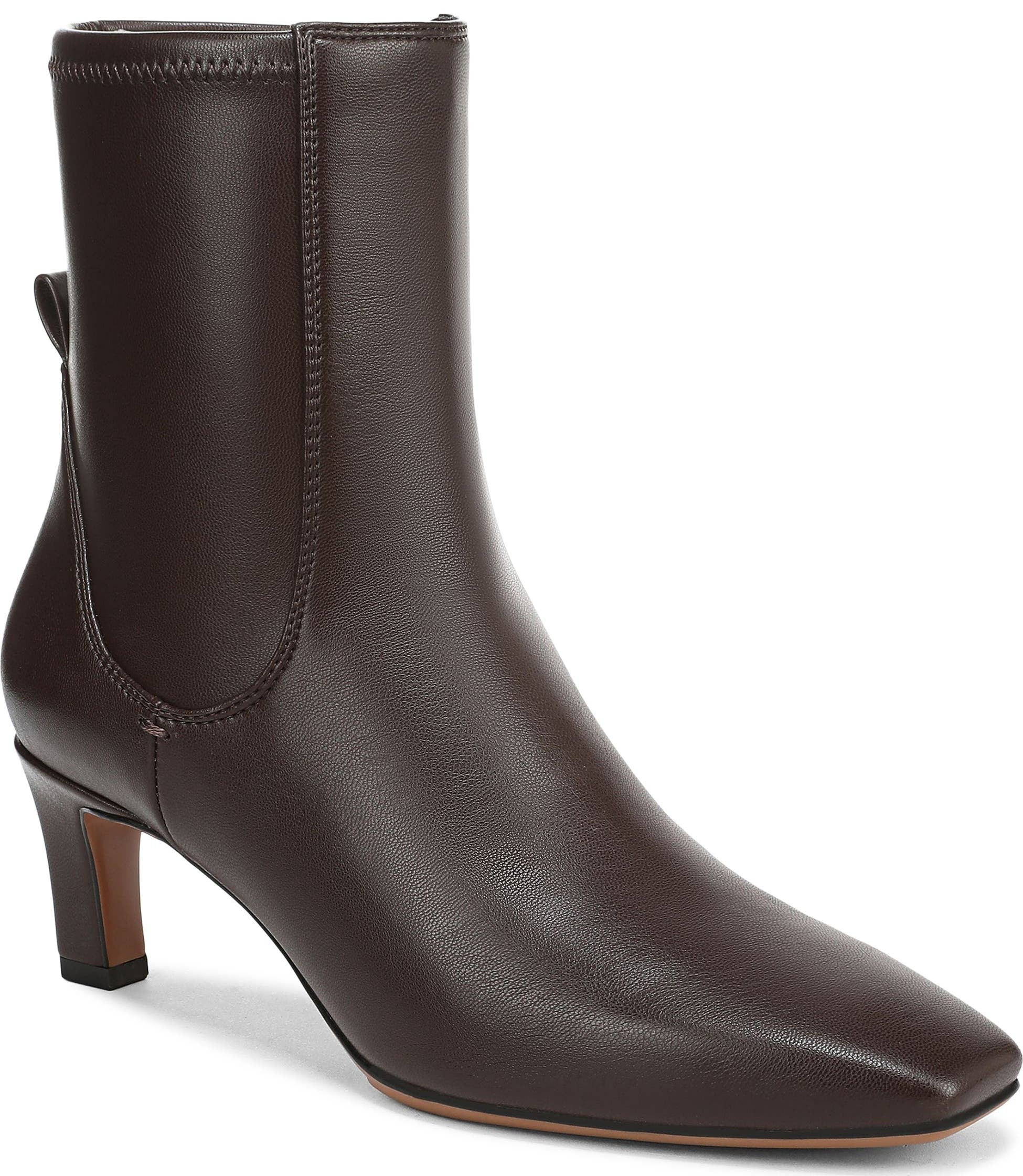 Add a touch of sophistication to your everyday look with these polished booties, offering endless versatility and effortless style. Featuring a faux leather upper, pull-on fit, squared-off toe, and 2-inch heel, they're perfect for dressing up or down.