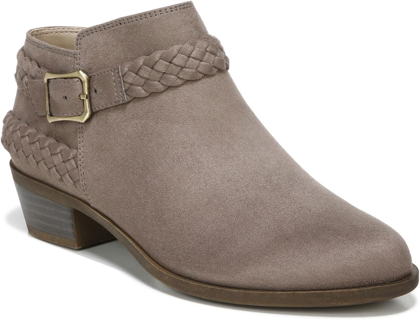 A classic bootie made new with modern details, the adriana from LifeStride is a go-to style. Fabric or faux leather upper with round toe, decorative buckle at ankle and wraparound braided detailing. Soft system® comfort package provides all-day support, flex, and cushioning. A plush layer of velocity with memory foam® cradles your foot. Traction sole provides you with extra stability. Just right height 1 and ¼ inch heel.