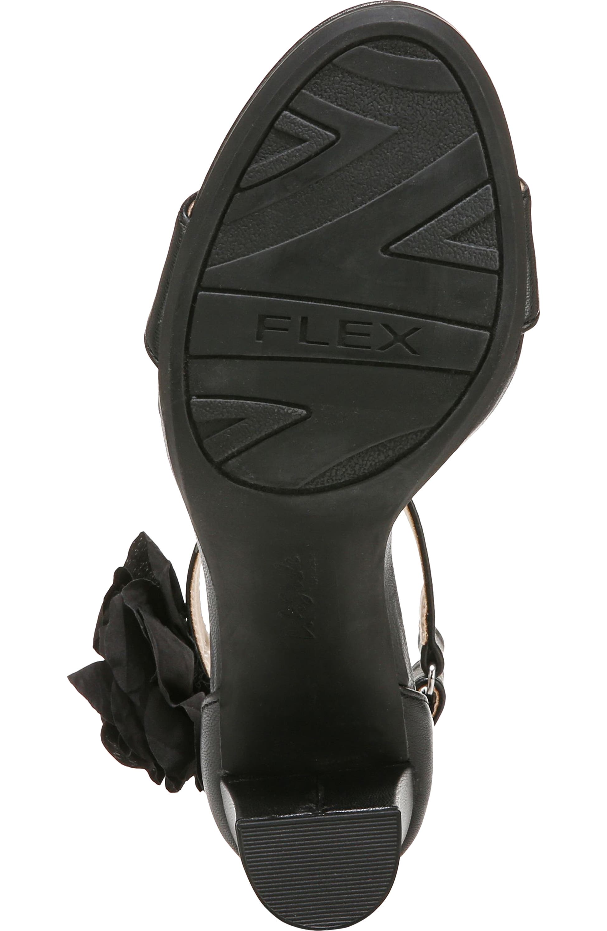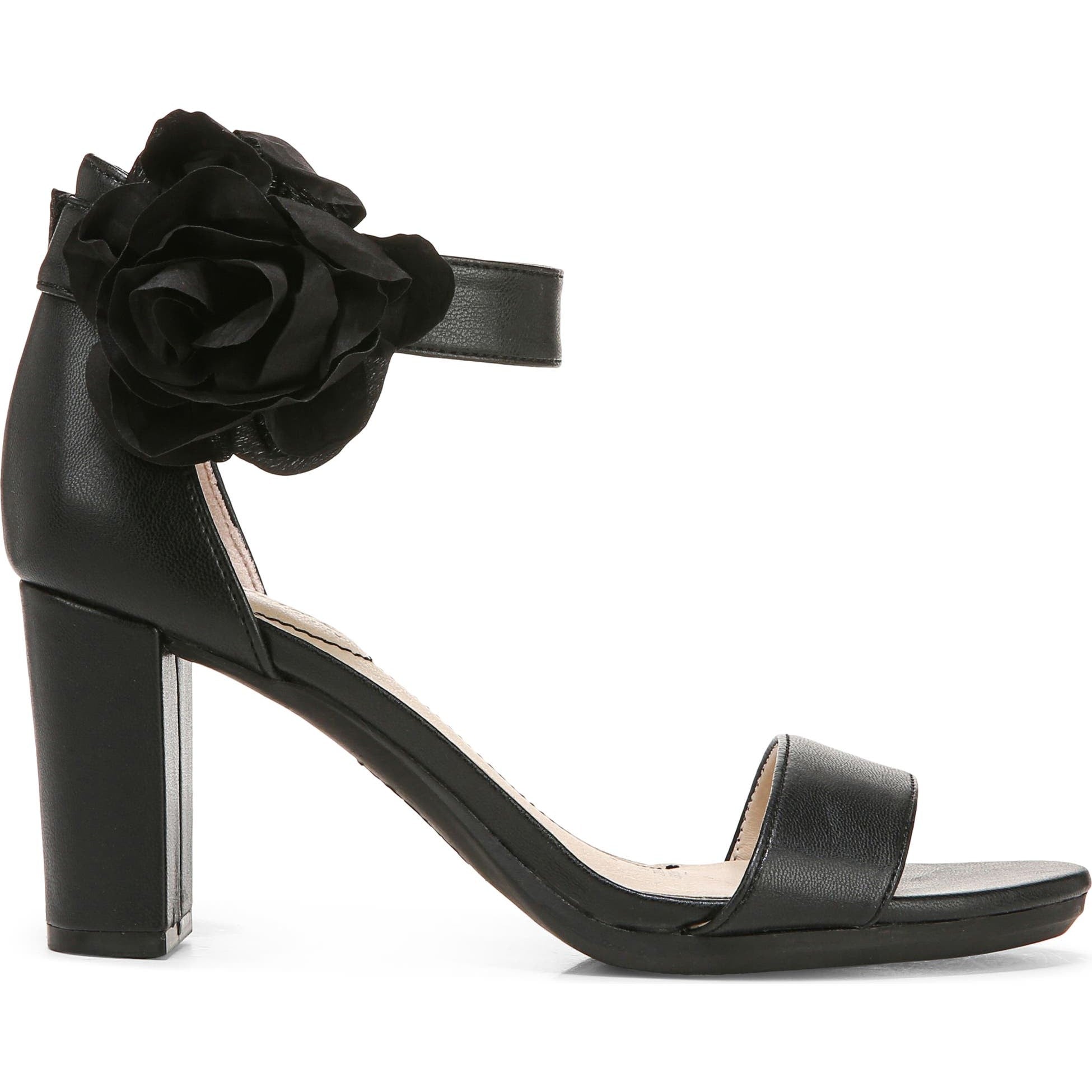 Styled to be admired. These eye-catching women's dress heels are ideal for any special occasion. Crafted from faux leather, they feature a round open toe, an adjustable ankle strap with built-in stretch, and a decorative fabric flower. Plus, the heel counter, linings, and insole board are partially made from recycled materials.