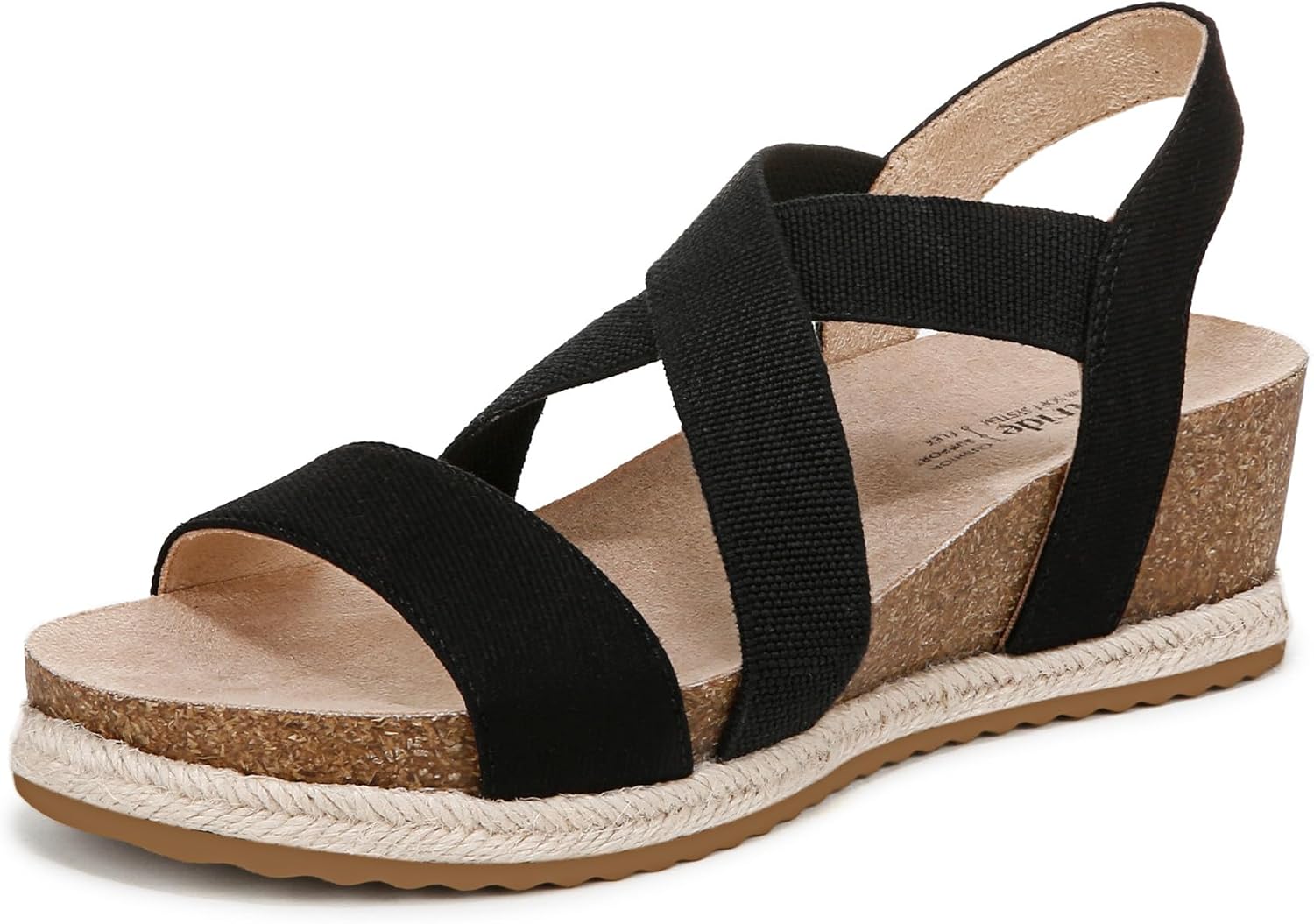 Slip into comfort and style with these effortless wedge sandals! Featuring built-in stretch and eco-chic espadrille detailing, they're perfect for easy, on-the-go glamour. Crafted with sustainable materials, these wedges boast faux leather or fabric uppers, stretch gore straps for flexibility, and a jute-wrapped detail that adds a touch of laid-back charm.