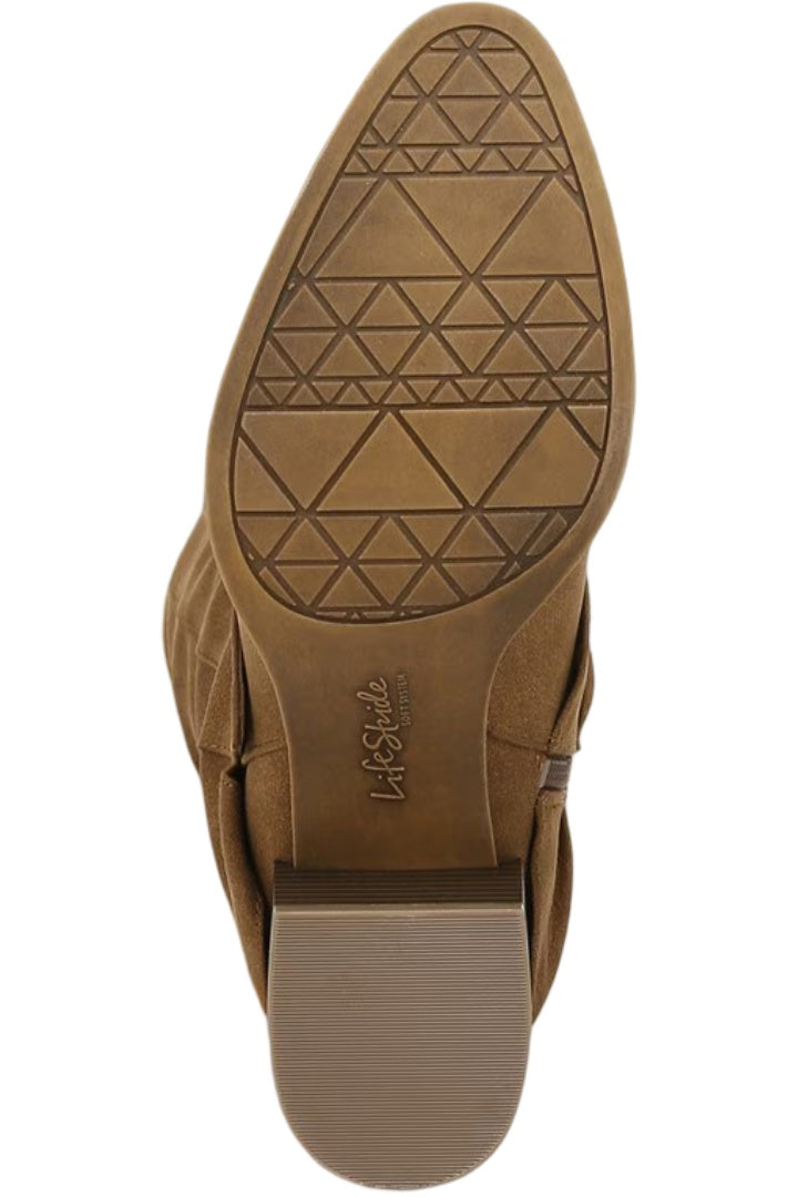 Effortlessly chic with a Western slouch aesthetic, the LifeStride Delilah knee-high boot features a softly pointed toe, easy-access inside zipper, and microsuede upper for a refined yet relaxed look. Designed for all-day comfort, it includes the Soft System cushioned insole and a traction outsole, with eco-conscious linings crafted in part from recycled materials. Standing at a 13.5″ shaft height and wrapping around an approximate 14.7″ calf circumference (both based on size 6), this boot delivers true knee-high coverage with a flattering fit. The 2″ stacked block heel provides subtle elevation, making the Delilah a timeless everyday staple with modern flair.