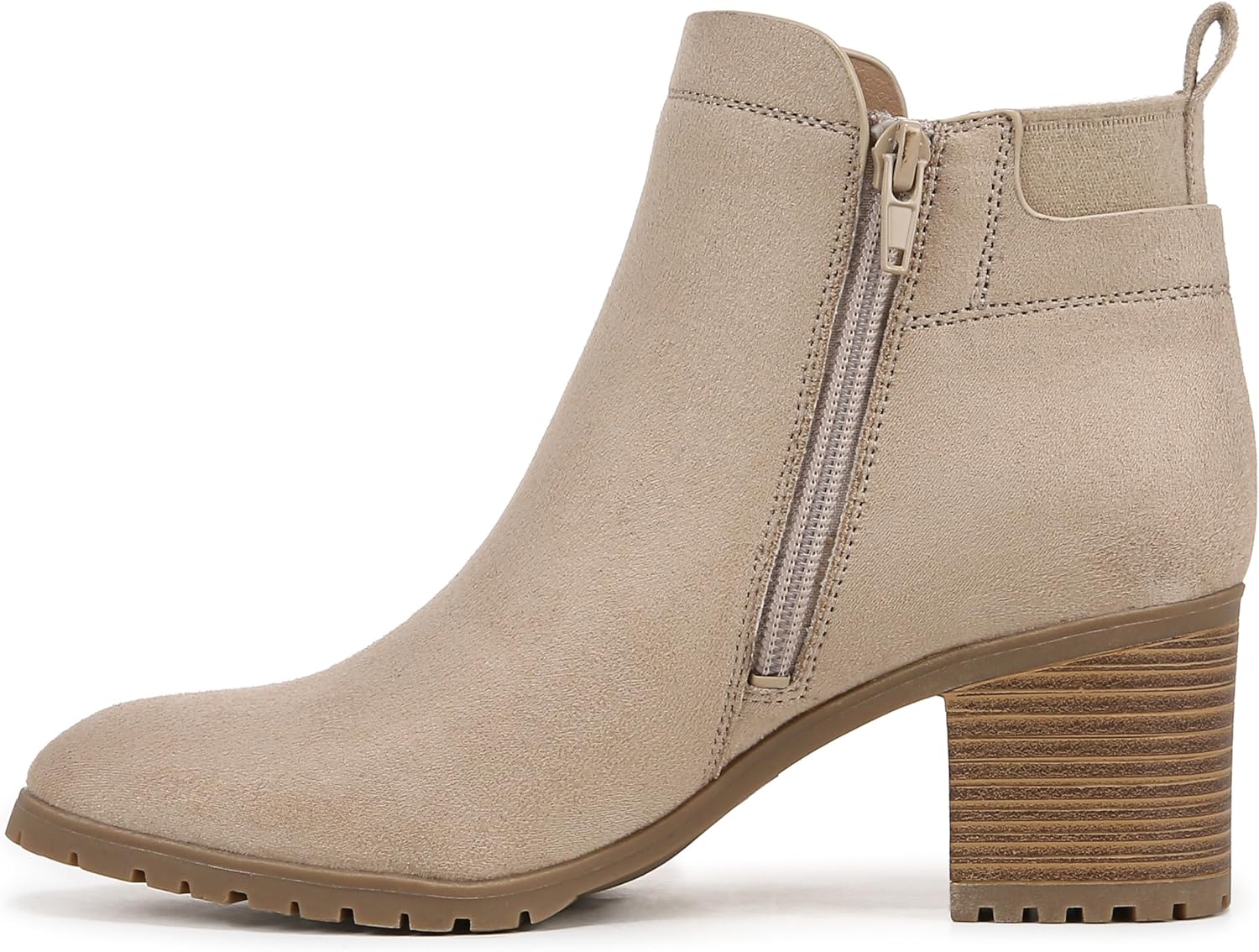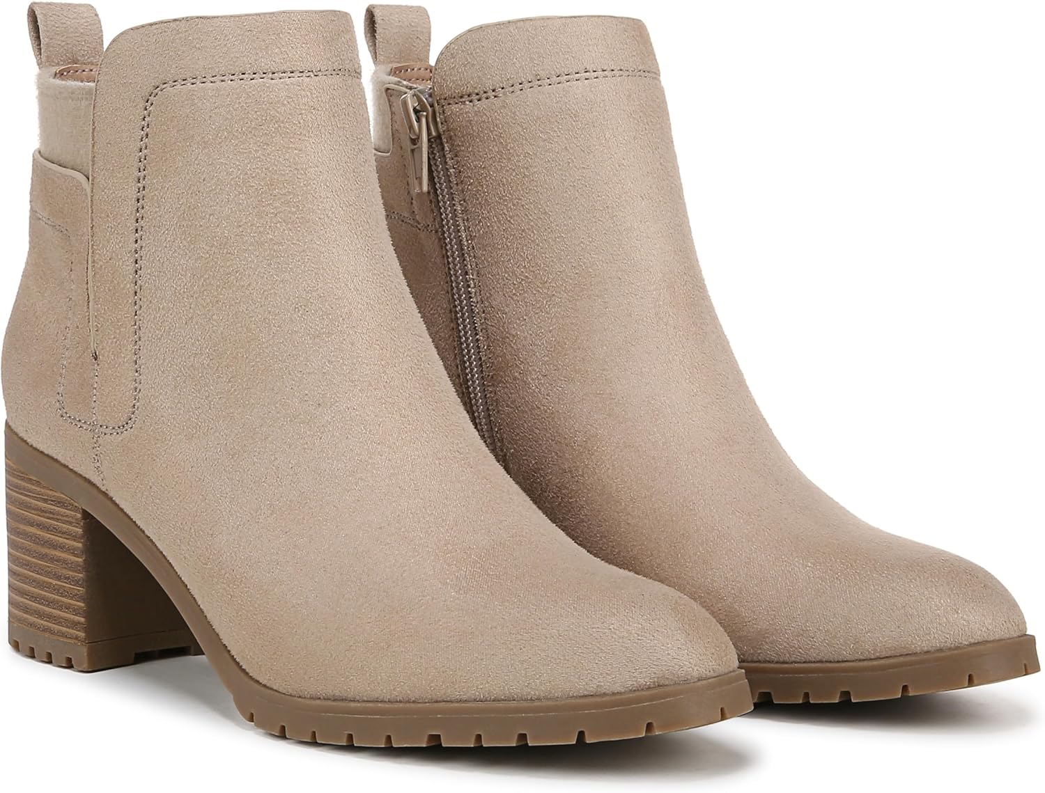 Achieve a cool, confident look while enjoying maximum comfort with these women's ankle boots featuring built-in stretch. Crafted from soft microfiber, they showcase a round toe, convenient side zipper, and a back pull tab for easy on and off. The stretch gore adds extra flexibility, while the durable lug sole and faux stacked block heel provide stylish support. With linings made from partially recycled materials, these boots are as eco-friendly as they are fashionable.
