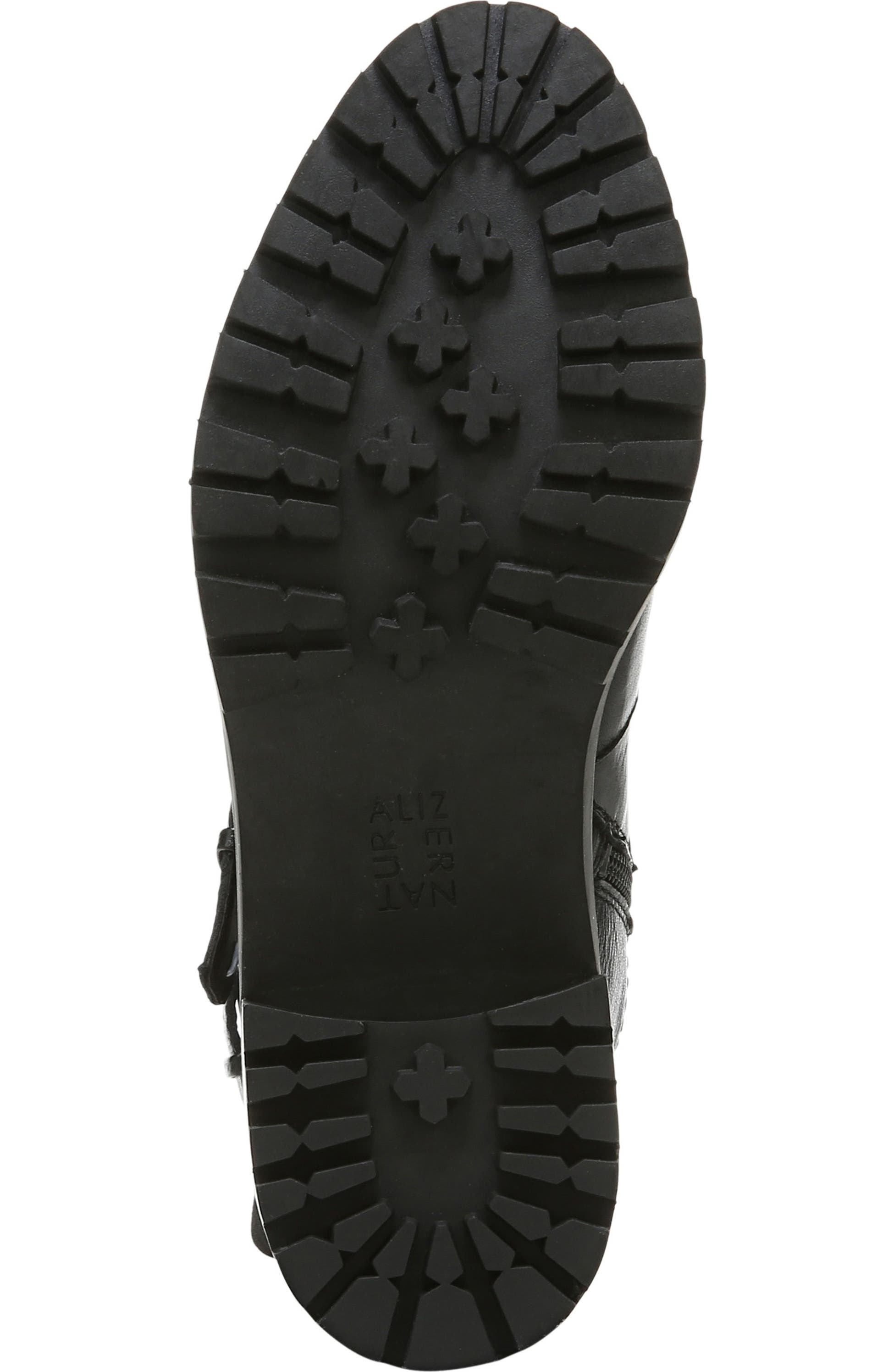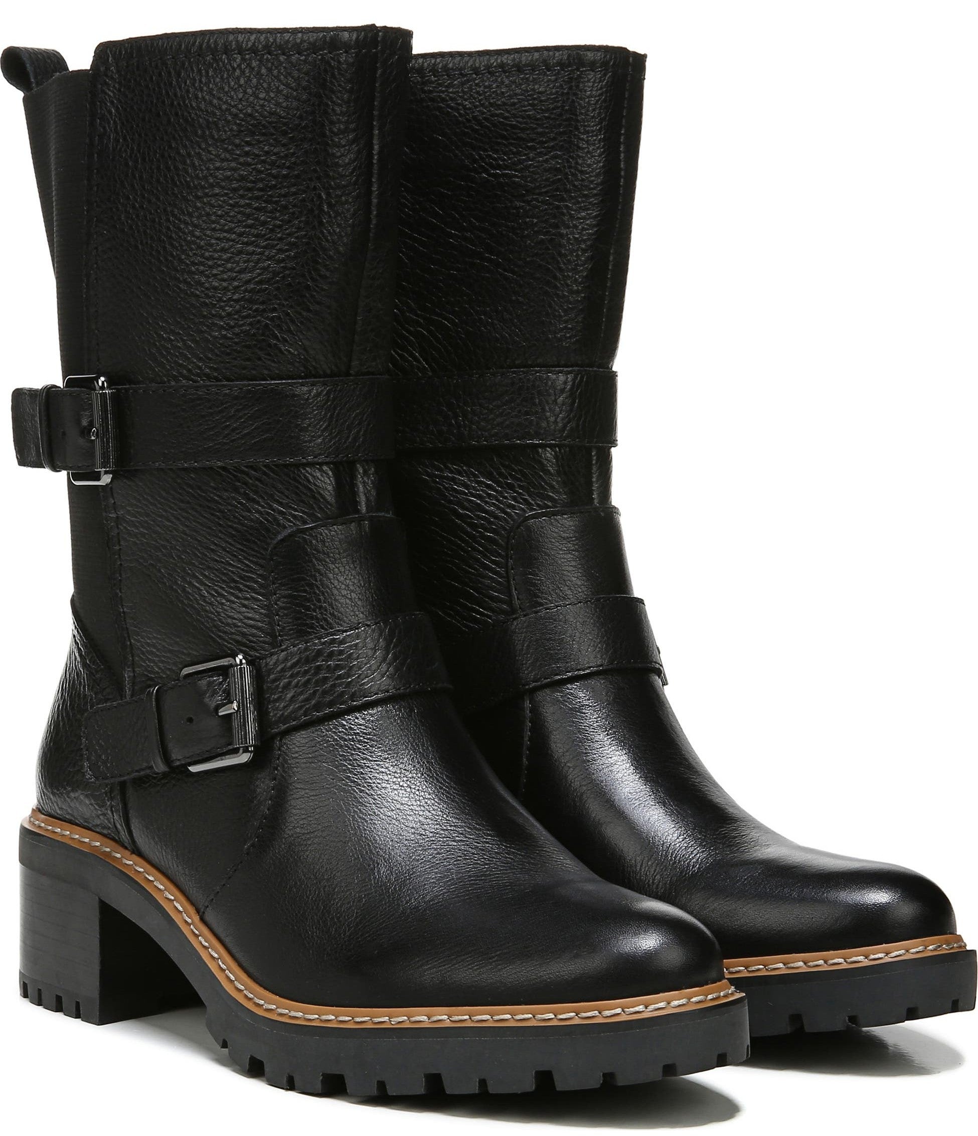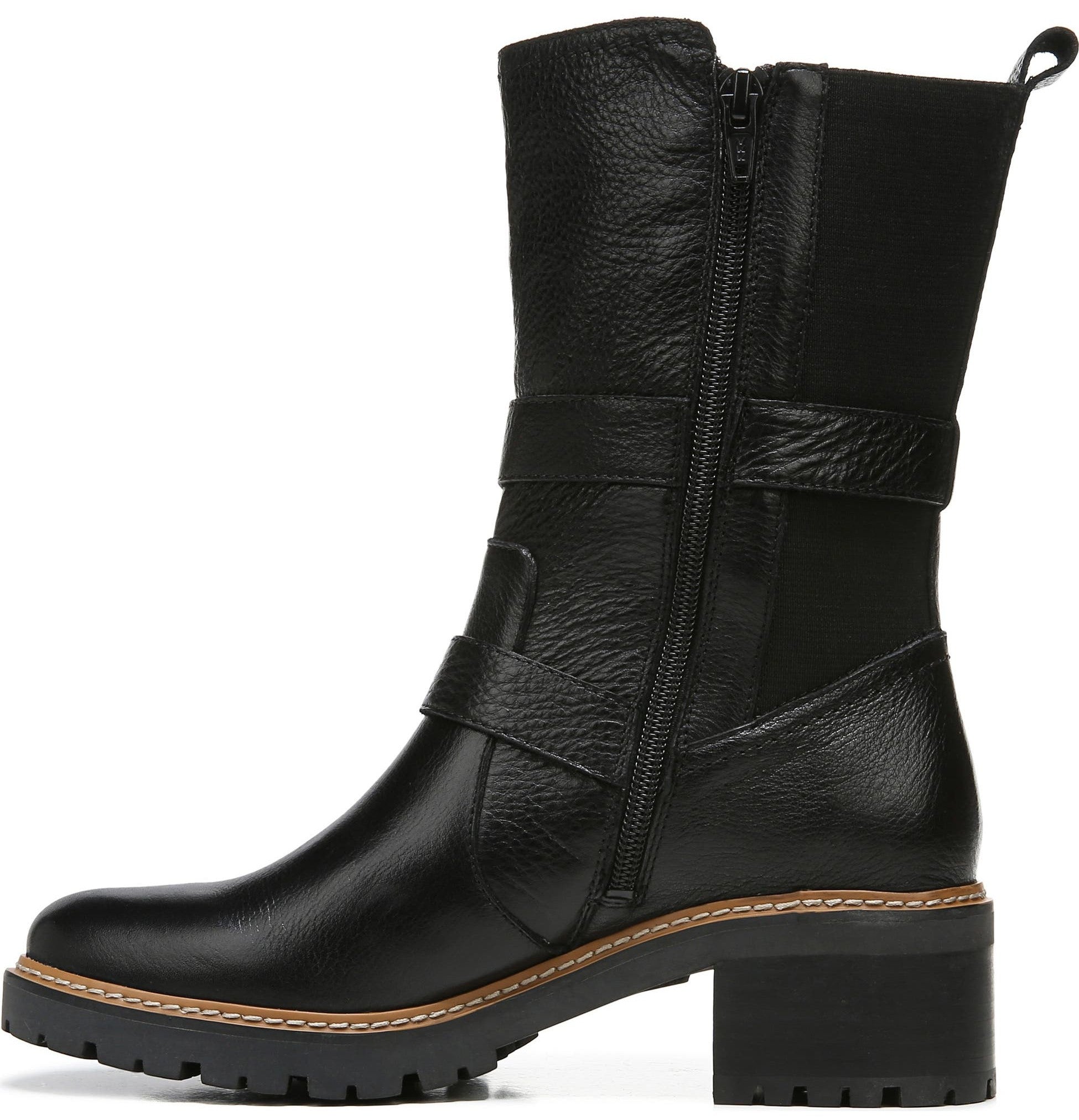 A modern twist on equestrian flair, the Naturalizer Tex Boot features a stylish square toe and sleek ankle-to-mid-calf design with a bold harness buckle accent for standout appeal.