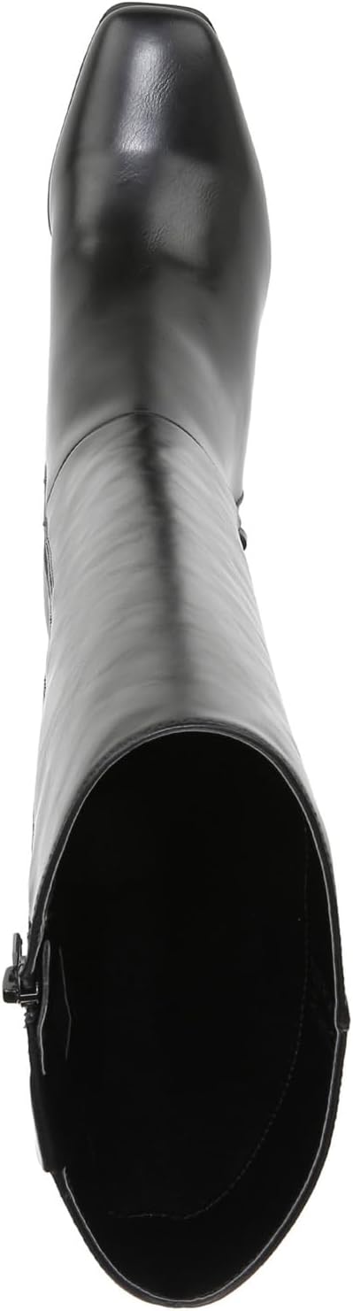 Comfort level = 100. What's next? Add this tall boot with an accented ankle to your cart. Get there beautifully. Knee-high boot with metallic ornamentation. Manmade upper with a closed square toe. Side zip closure.