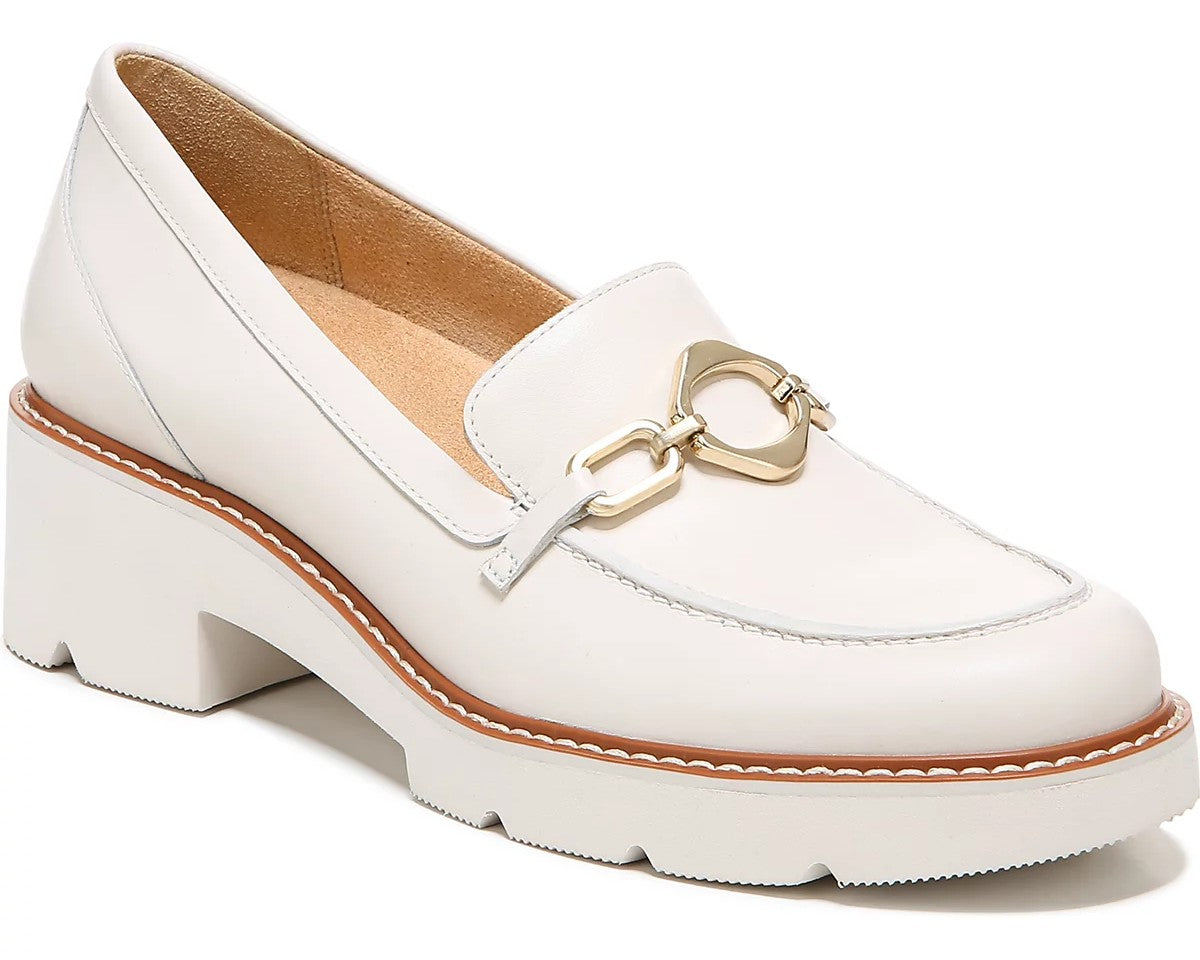 Step into effortless style with this Lite Series slip-on loafer from Naturalizer. Featuring a leather upper with chainlink detail, ultra-lightweight design, and Contour+ Comfort technology, it offers all-day cushioning and support. Finished with a flexible lug sole, 0.75" platform, and 2.25" block heel for modern, easy wear.