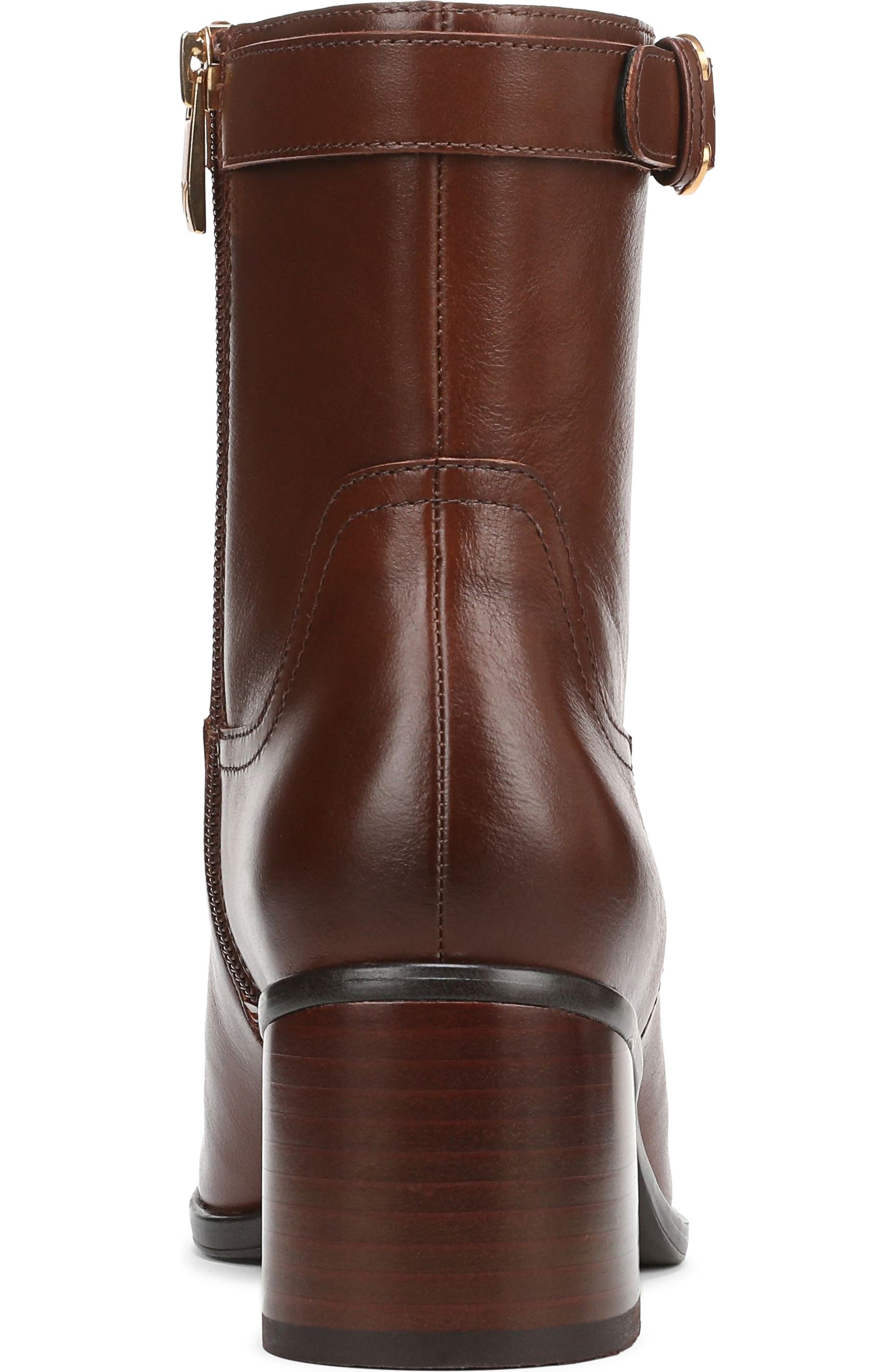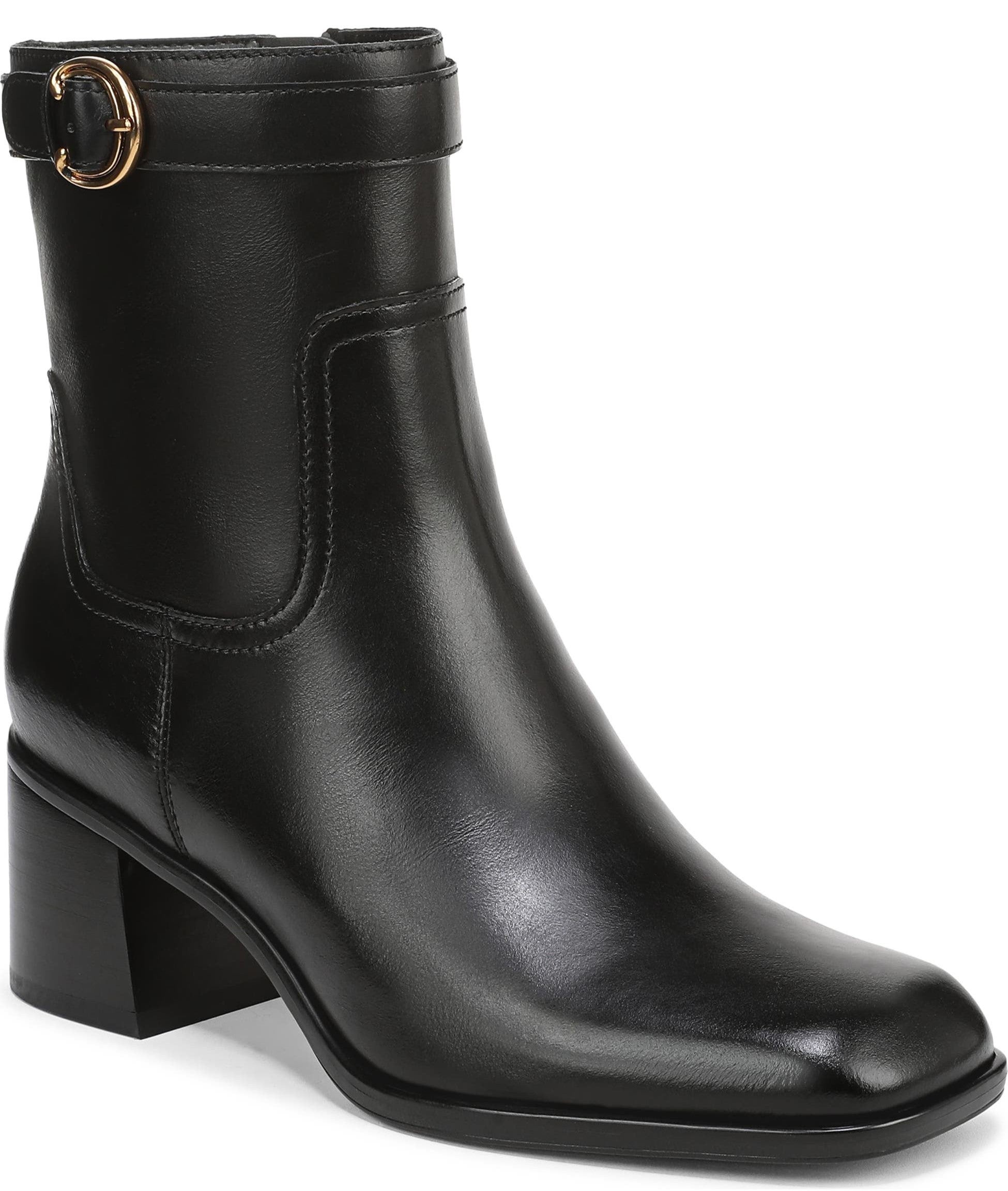Elevate your style with these luxe ankle boots, featuring clean lines, decorative welt stitch details, and a metallic buckle accent. With a 2.38 inch block heel, leather upper, and Contour+ Comfort tech, they'll add sophistication to any outfit. The boot height is 5.12 inch and ankle circumference is 10.24 inch, perfect for a comfortable fit.
