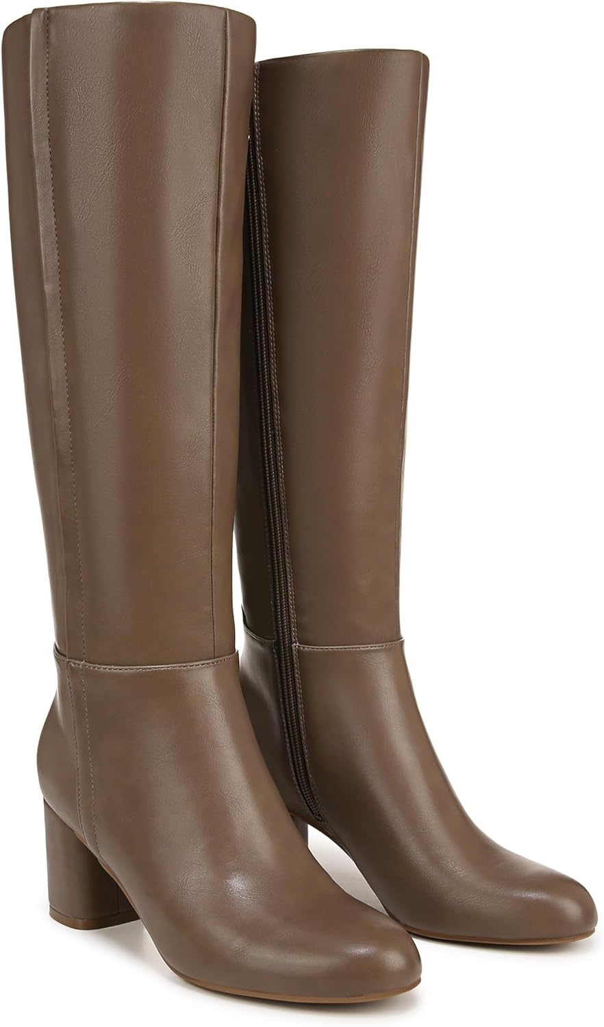 The Naturalizer Loving knee-high boot blends refined style with comfort technology to carry you through cooler seasons. It features a 2.5 inch block heel, a shaft height of about 14.57 inches, and a calf circumference of roughly 14.96 inches (measured on a size 6M). Hidden stretch gore and a side seam keep the look polished while offering flexibility for varied leg shapes. The Contour+ Comfort footbed ensures cushioning support for all-day wear.