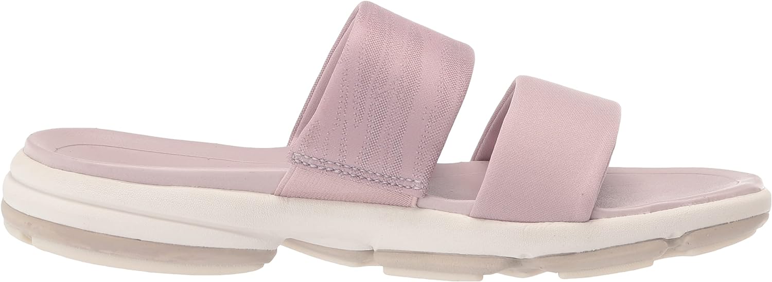 The Ryka Women’s Diva Slide Sandals offer a sleek, slip-on design with soft, stretchy fabric straps that wrap comfortably over the foot. A molded footbed with iQ contour adapts to your arch and heel for supportive wear throughout the day. The lightweight midsole featuring RE-ZORB LITE foam enhances cushioning and impact protection, while the durable molded TPR outsole keeps traction steady. With a heel height of approximately 0.75 inch this slide blends casual ease with subtle lift.