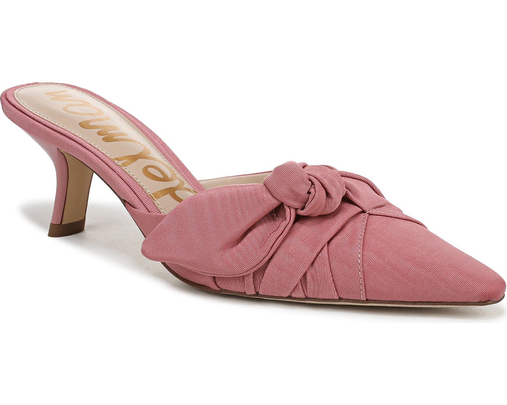 The Sam Edelman Bex Knot kitten-heel mules are chic women’s slip-on shoes that elevate everyday and dress-up looks with refined style and wear-all-day comfort. Featuring a sleek upper with an elegant knotted detail across the vamp, these mules add a touch of polished flair to skirts, tailored pants, or your favorite denim. Built with a softly cushioned footbed, they help support each step while keeping things lightweight and comfortable from morning meetings to evening plans. The graceful kitten heel delivers subtle height that elongates your silhouette without compromising stability or comfort. With their sophisticated design and versatile profile, the Bex Knot mules are a stylish staple for both work and weekend wardrobes.