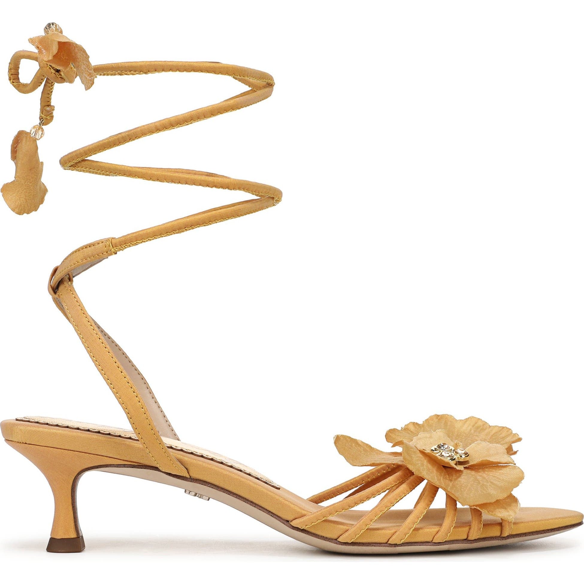 Meet the Carla, your new lace-up kitten heel obsession! This open-toe sandal exudes effortless elegance, featuring a floral upper and adjustable lace-up closure for a perfect fit.