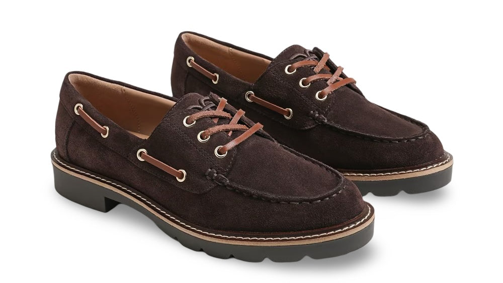 Step into classic coastal style with the Sam Edelman Women’s Fay Boat Shoes — a versatile wardrobe staple that pairs effortlessly with everything from shorts to chinos. These timeless boat shoes feature a premium leather upper, signature moc-toe stitching, and rust-proof eyelets with leather laces for authentic nautical flair. The cushioned footbed provides all-day comfort, while the durable rubber sole delivers dependable grip on both wet and dry surfaces.