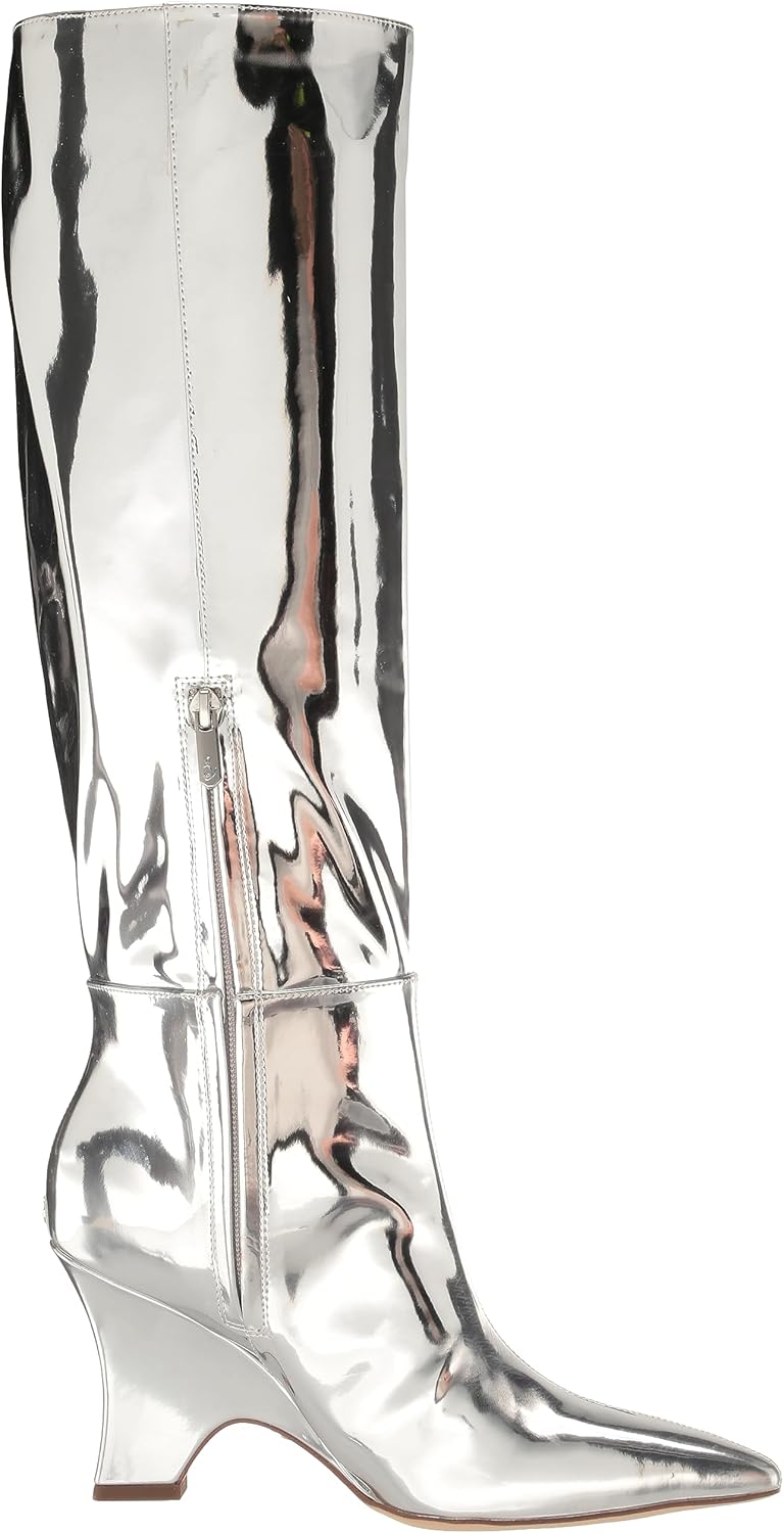 Sleek and modern, the Sam Edelman Vance knee-high boot showcases a pointed toe and smooth silhouette with a functional side zipper for effortless elegance. With a heel height of approximately 3.4″, a shaft height of about 15.8″, and a calf circumference around 14.6″ (all based on size 6), this boot offers genuine knee-high coverage with a tailored, striking fit. Crafted from premium leather with synthetic lining and insole, it blends contemporary refinement with everyday wearability—perfect for elevating everything from evening dresses to streamlined trousers.