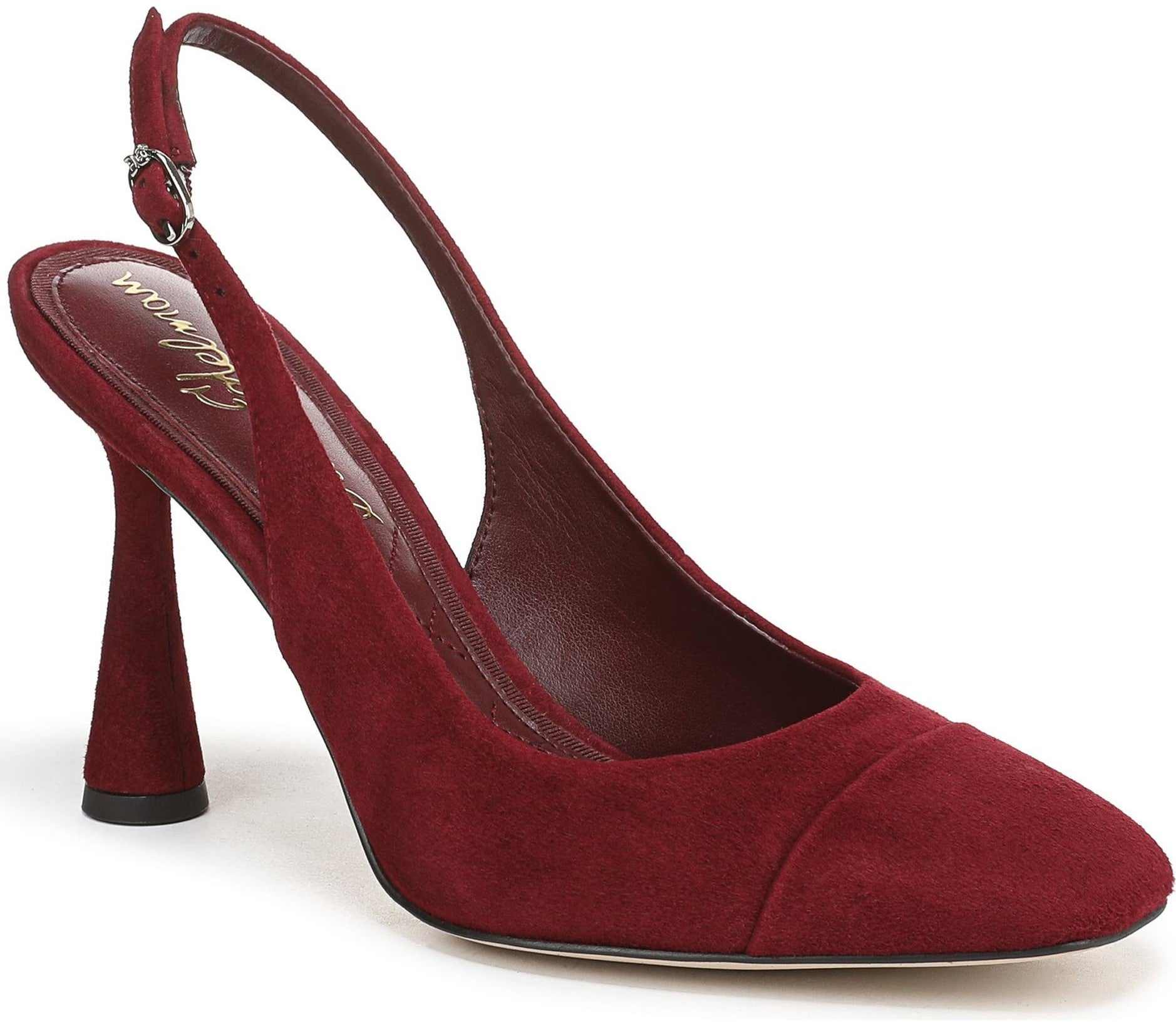 Sam Edelman Women’s Ronnie Slingback Pumps are chic, versatile heels that bring refined elegance to both work and weekend outfits. These slingback pumps feature a square-toe silhouette and an adjustable buckle sling strap that delivers a secure, customized fit while framing the foot beautifully. Crafted with a leather upper, synthetic lining, and rubber outsole, they balance polished style with all-day wearability. The approximately 1.6 inch block heel adds confident lift without feeling too high, making these pumps ideal for pairing with trousers, skirts, or dresses for events, office days, or night-out looks. With a modern yet timeless profile, these slingbacks add a touch of sophistication to any ensemble.