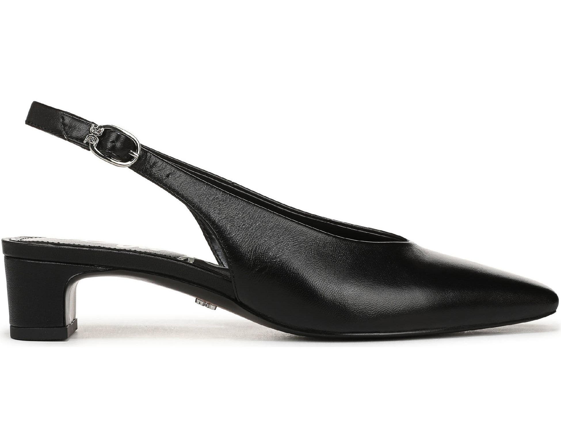Sam Edelman Women’s Ronnie Slingback Pumps are chic, versatile heels that bring refined elegance to both work and weekend outfits. These slingback pumps feature a square-toe silhouette and an adjustable buckle sling strap that delivers a secure, customized fit while framing the foot beautifully. Crafted with a leather upper, synthetic lining, and rubber outsole, they balance polished style with all-day wearability. The approximately 1.6 inch block heel adds confident lift without feeling too high, making these pumps ideal for pairing with trousers, skirts, or dresses for events, office days, or night-out looks. With a modern yet timeless profile, these slingbacks add a touch of sophistication to any ensemble.