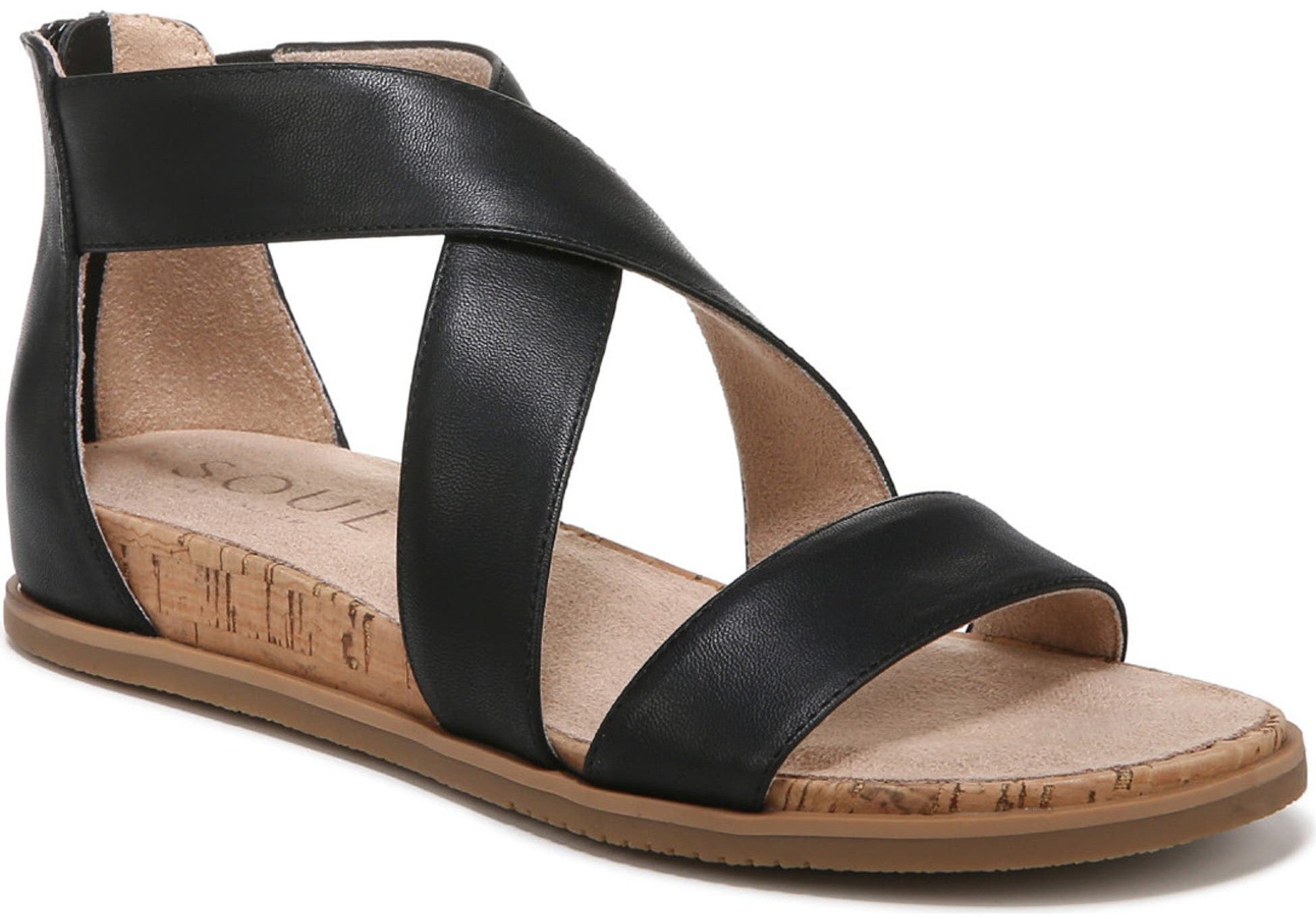 Step into comfort and shine in these strappy wedge sandals from SOUL Naturalizer. Featuring a lightweight cork outsole and adjustable zip closure, these casual sandals offer all-day comfort with arch support, memory foam, and antimicrobial technology. Perfect for any day of the week!
