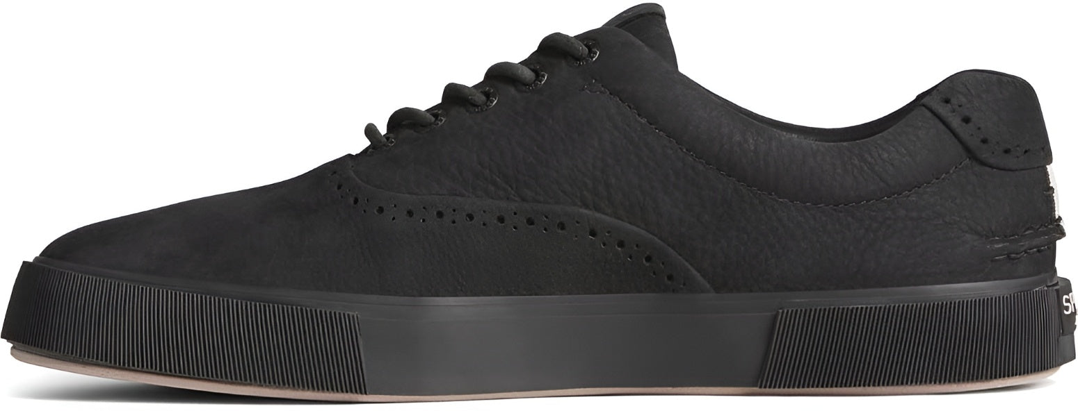 Sperry Men’s Gold Cup Striper PLUSHWAVE CVO Sneakers are premium everyday sneakers that blend classic coastal style with modern comfort technology. Part of Sperry’s upscale Gold Cup™ collection — known for combining timeless craftsmanship with elevated materials and comfort features — these sneakers feature a premium leather and nubuck upper with rawhide laces for a refined yet relaxed look that works from weekend wear to city strolls. Built with PLUSHWAVE cushioning technology throughout the insole and midsole, they offer lightweight, responsive comfort with every step, making them ideal for all-day wear. The non-marking rubber outsole with signature Wave-Siping™ traction provides dependable grip and flexibility on a range of surfaces. With heritage Sperry styling updated for modern comfort, these versatile sneakers pair effortlessly with chinos, jeans, shorts, or casual trousers.