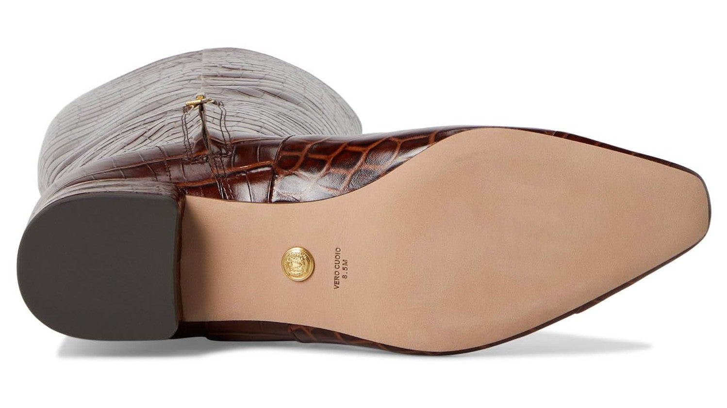 Make a statement with the Veronica Beard Cecile High Shaft Boot, featuring a striking square cap toe and luxurious croc-embossed leather. With a 1.0″ block heel, 17.0″ shaft height, and 15.75″ calf circumference, these boots offer polished coverage and a flattering fit. Easy side zipper and comfortable leather lining and cushioned insole make them perfect for all-day wear with dresses, skirts, or pants.
