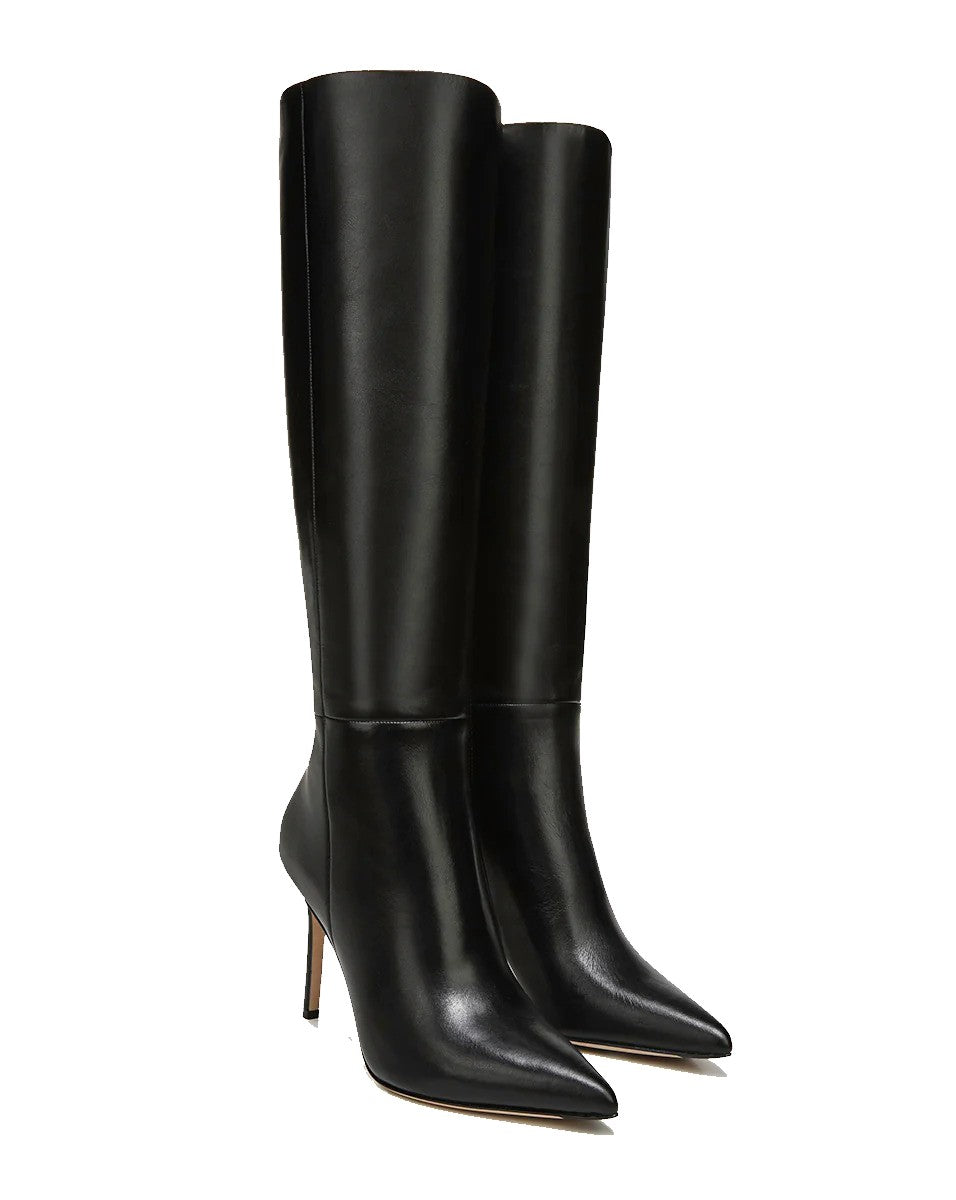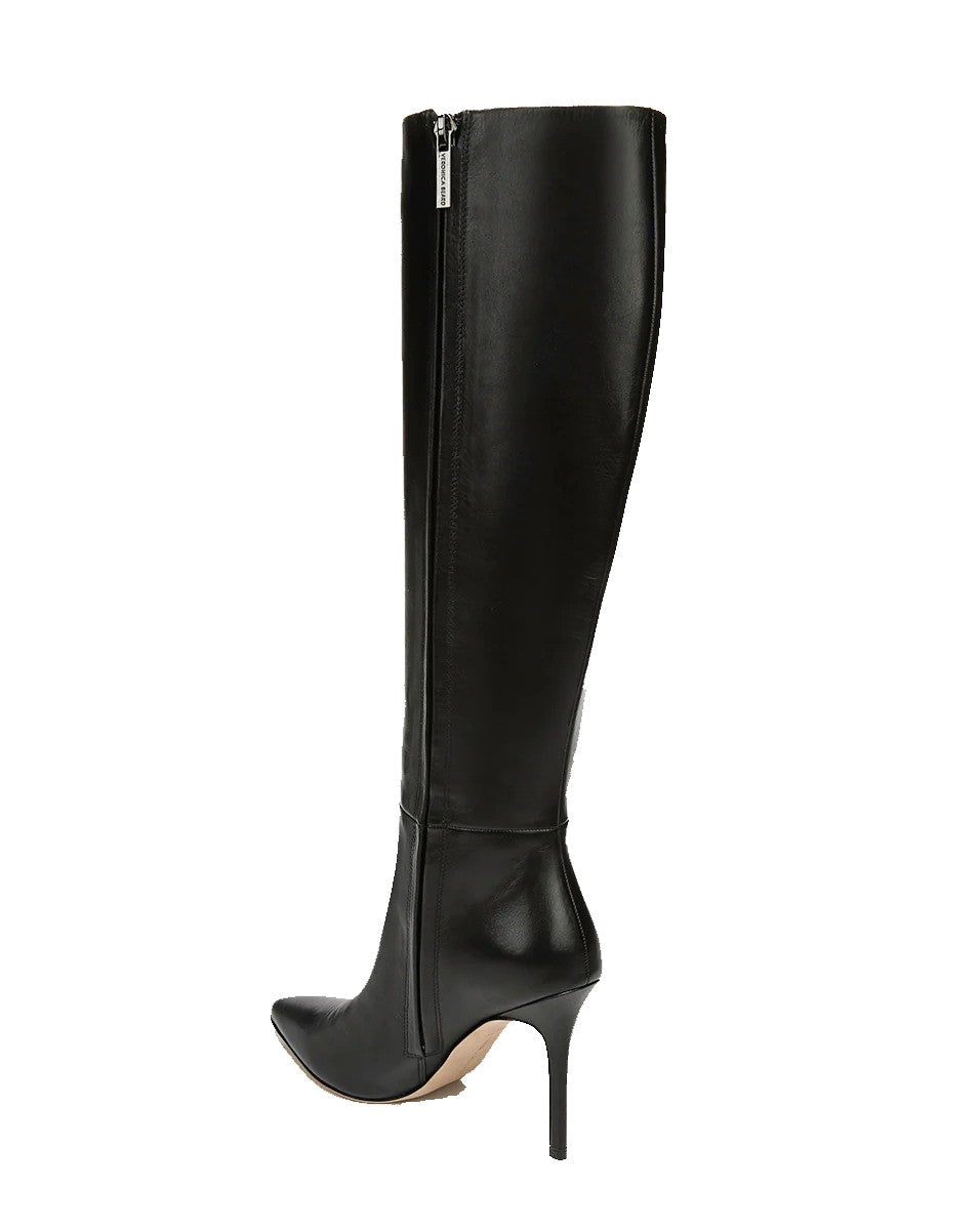 Radiate modern elegance in the Veronica Beard Lisa tall boots, featuring a sleek pointed toe and refined stiletto heel that elevates any outfit. Crafted for confident wear, they stand at 3.5″ in heel height, with a generous 18.0″ shaft height and a contoured 15.5″ calf circumference (based on size 7), delivering true knee-high coverage with a structured, flattering silhouette. A discreet side zipper ensures effortless wear, while the supple leather construction and cushioned insole offer a polished feel without compromising comfort. These boots are a perfect balance of architectural sophistication and bold style.