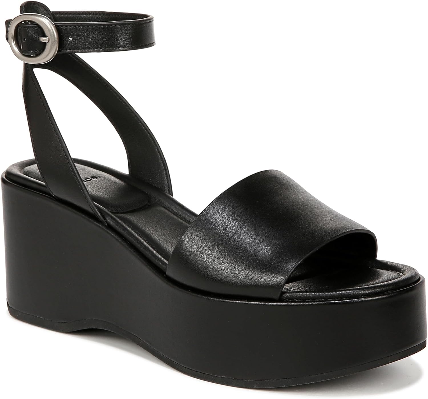 The Vince Women’s Phillipa Clo Heel Sandal is a modern take on minimalist sophistication, combining effortless design with luxurious craftsmanship. Made from 100% smooth leather, this platform sandal features an open round toe and an ankle strap with adjustable buckle closure for a secure fit. The padded leather footbed and rubber outsole ensure lasting comfort and stability, while the sculpted heel and clean lines create a refined, architectural silhouette. Designed in Los Angeles, the Phillipa reflects Vince’s signature balance of understated style and modern elegance, ideal for both casual wear and elevated evenings.