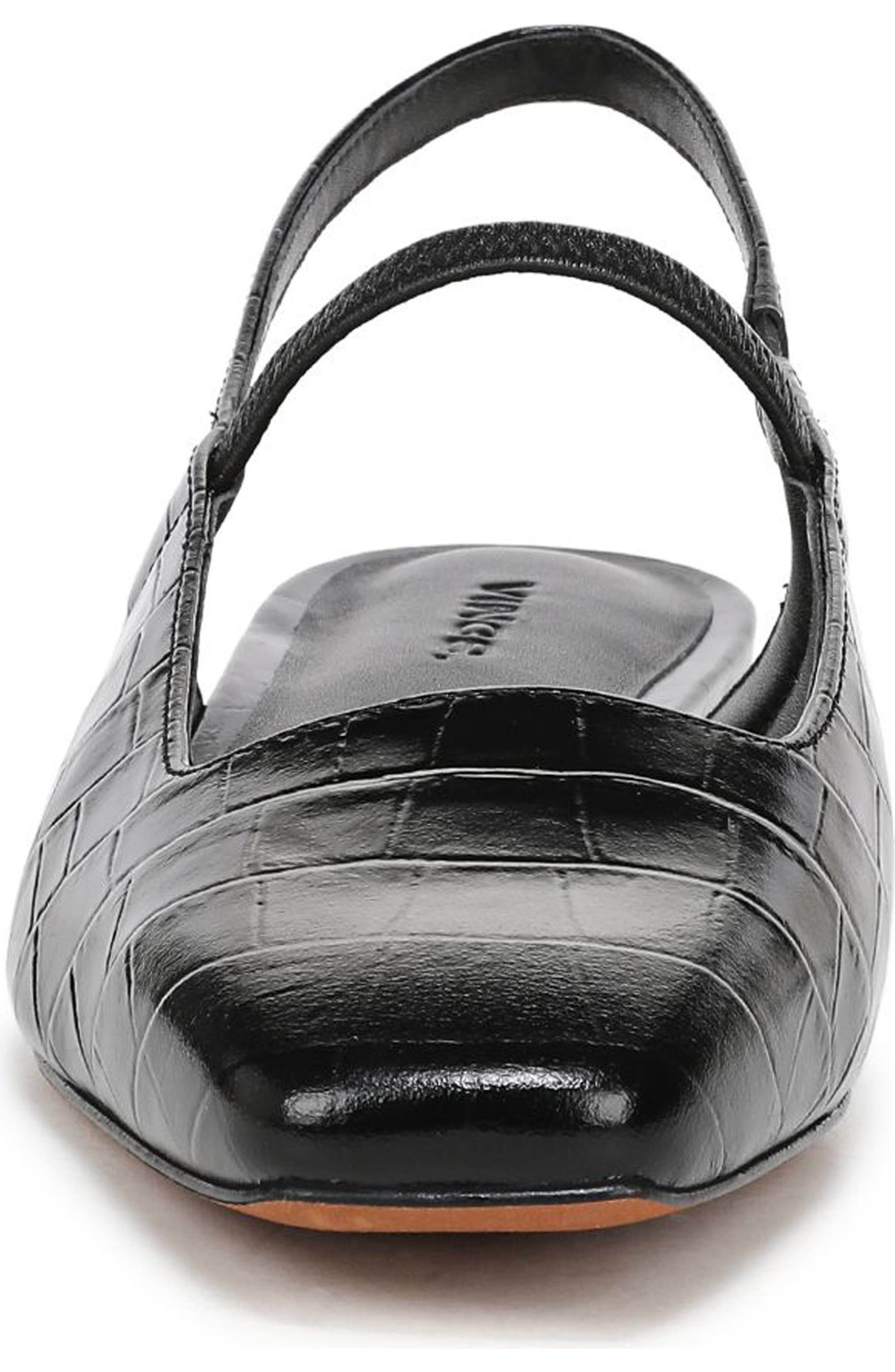 Our best selling Venice flat is refreshed for the season with a textural croc embossed leather that adds depth and modern appeal. This slip on style features a square toe and elasticized straps that gently hug the foot for a secure, flexible fit. Set on a low 0.62 inch heel, it delivers easy, walkable comfort for all day wear. Chic yet effortless, it pairs seamlessly with both casual and polished looks.