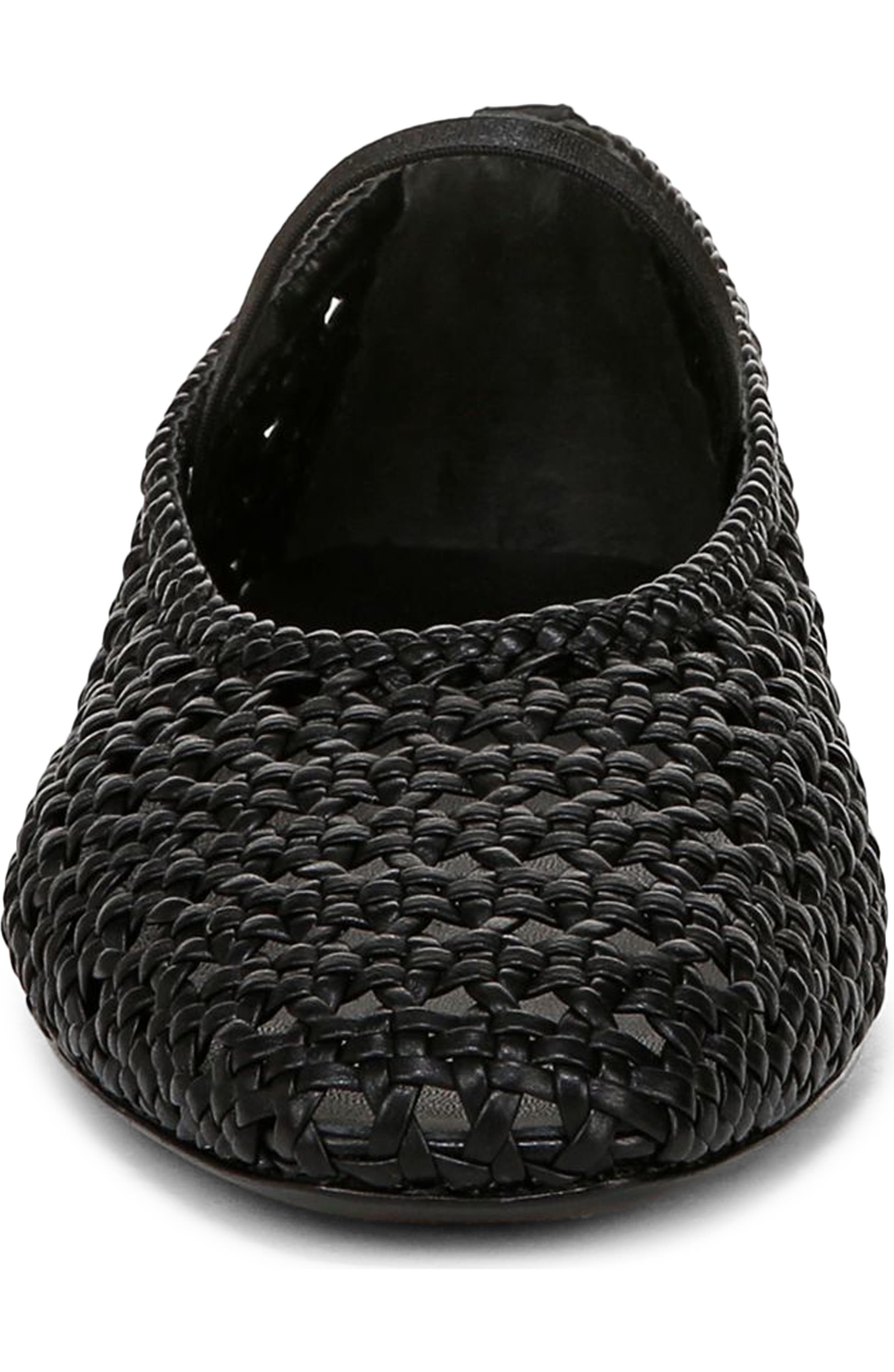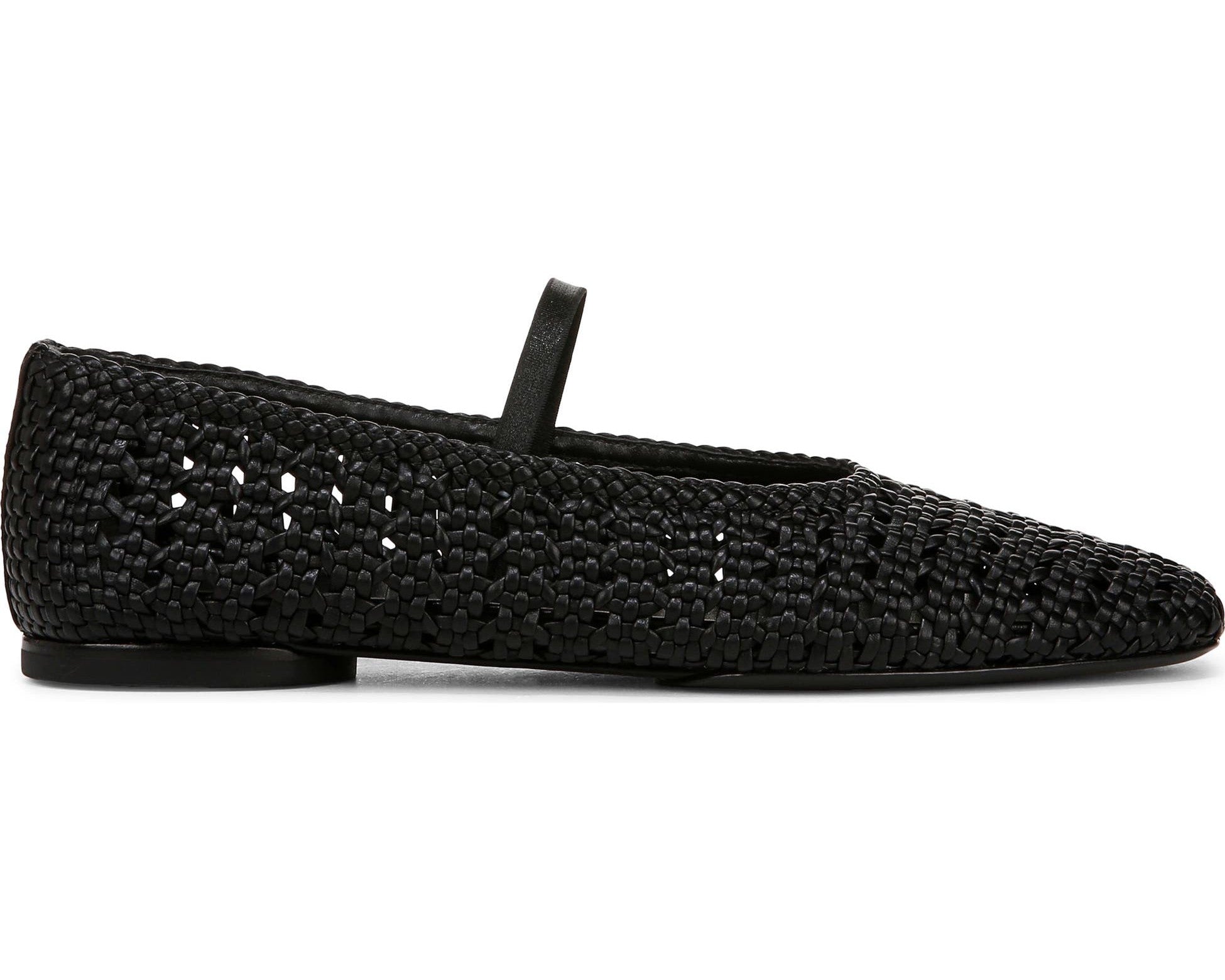 The Vince Vivian Leather Mary Jane Flat blends modern minimalism with timeless elegance. Crafted from soft nappa leather, it features a sleek square toe, tonal grosgrain trim, and a delicate elastic strap for a secure fit. A versatile slip-on style perfect for effortless sophistication.