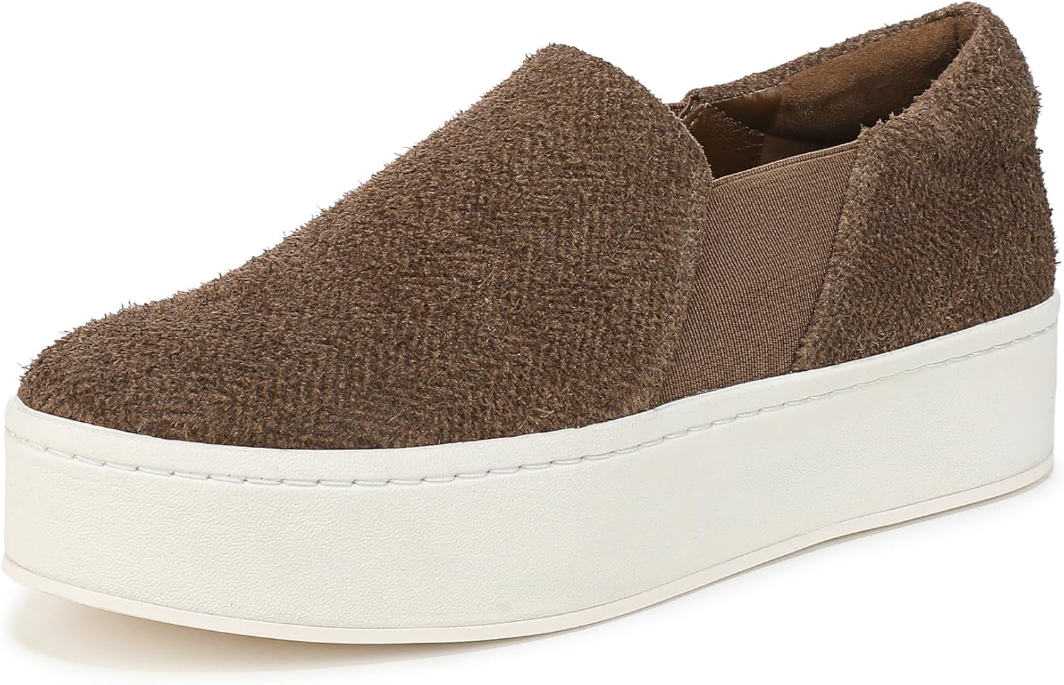 The Vince Women’s Warren Sneaker is a polished slip-on sneaker crafted in smooth leather with elastic side gores for effortless entry and a sleek urban profile. It features a hollowed double-thick rubber platform sole measuring 1.65 inch (approx. 41.9 mm) which adds height without excess weight. With a padded heel collar and a rounded toe design, this shoe balances comfort and style for everyday wear. The minimalist aesthetic and monochrome finish make it versatile for casual weekends or elevated street style.