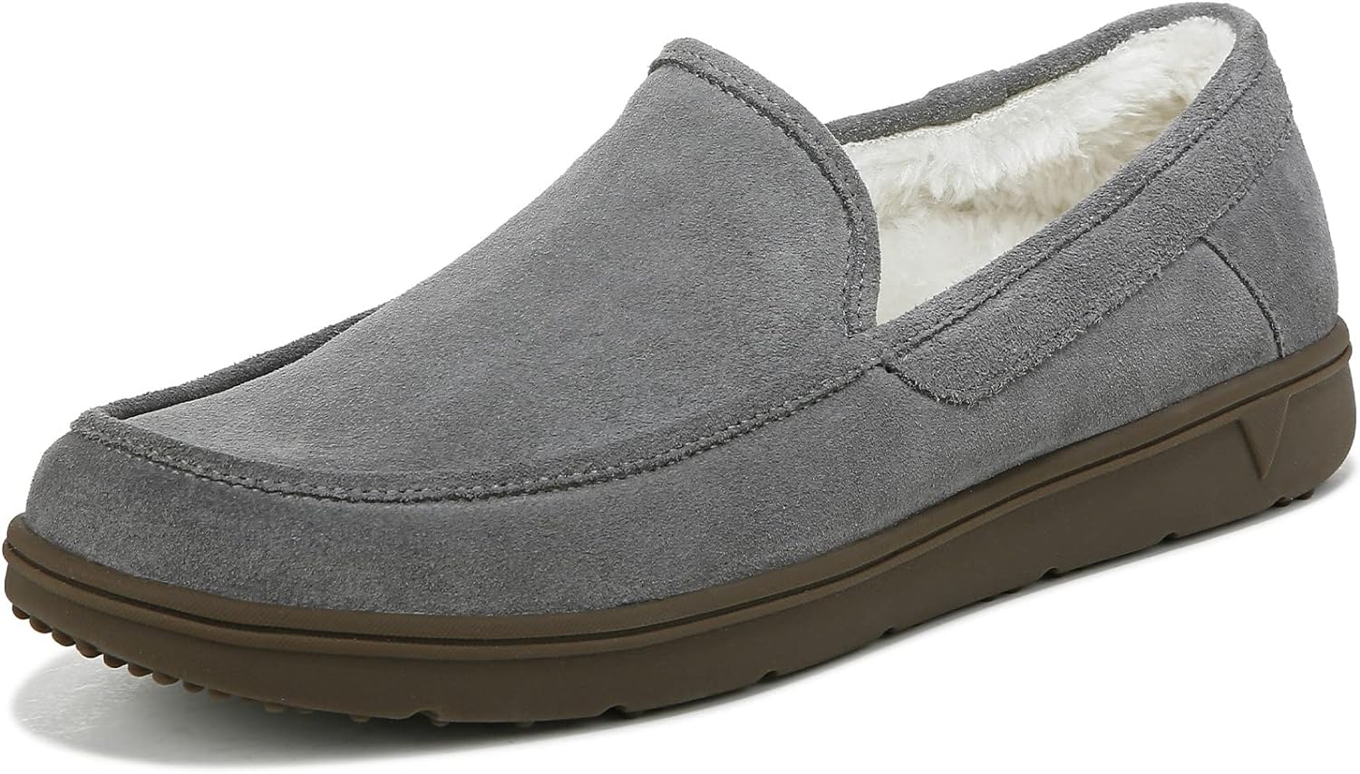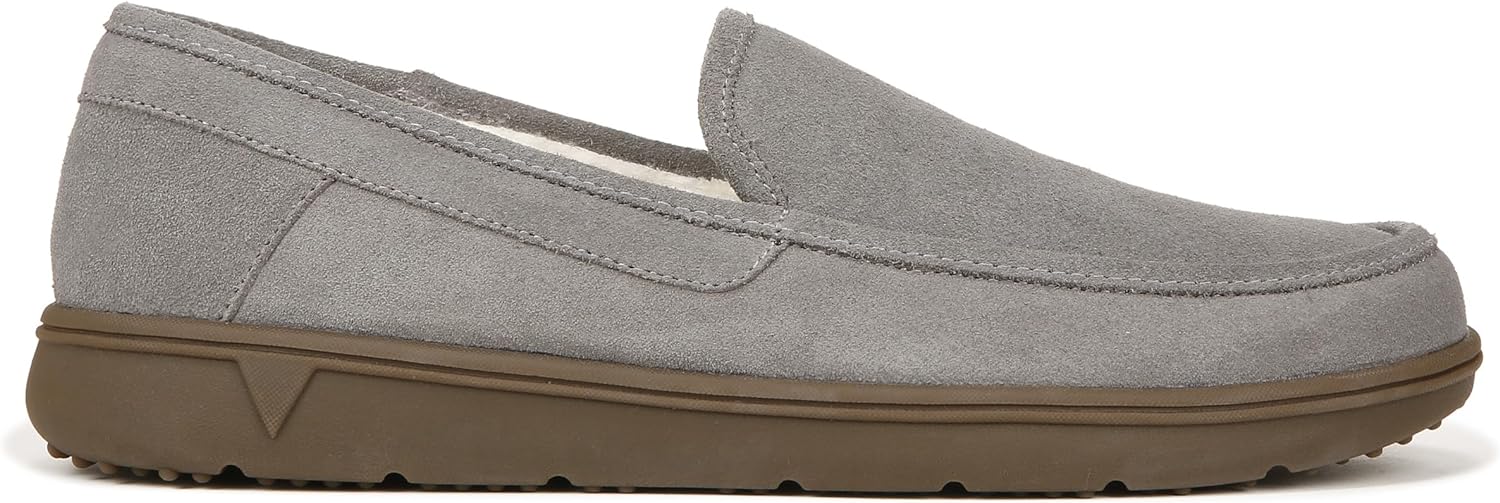 Sink into plush comfort with Vionic's Gustavo Suede Slipper, featuring a luxurious suede upper that molds to your feet and a plush faux-shearling lining for cozy warmth, while Vionic's signature biomechanical orthotic footbed provides essential arch support and stability for all-day wear.