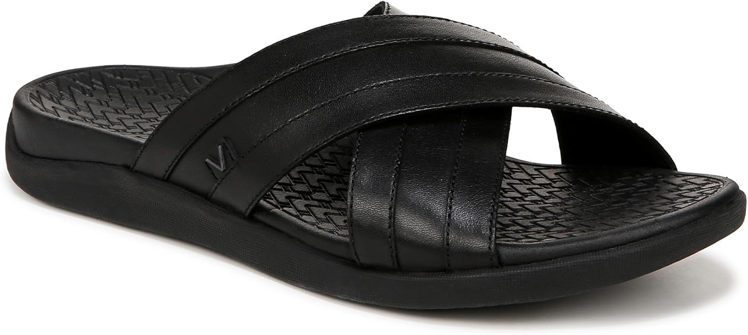 Experience comfort with Vionic's Tide Slide sandals, featuring a supportive footbed and leather criss-cross straps for a flexible fit. Perfect for everyday wear, these sandals combine durability, support, and style.